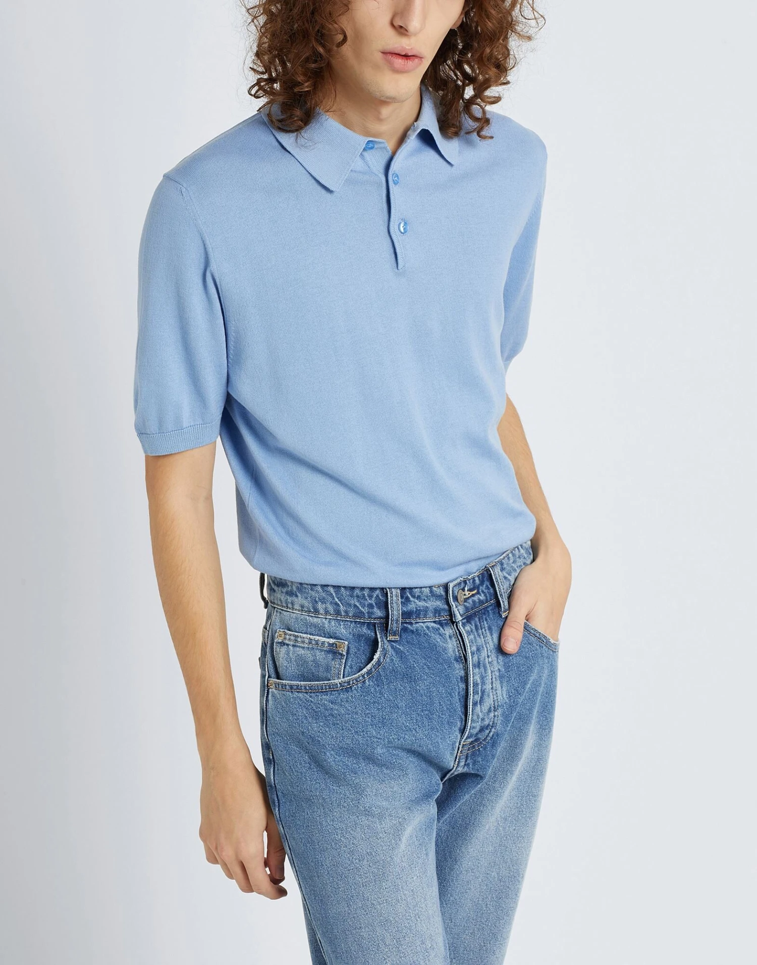 knitted, lightweight knit, no appliqués, solid color, polo collar, short sleeves, 3 buttons, no pockets