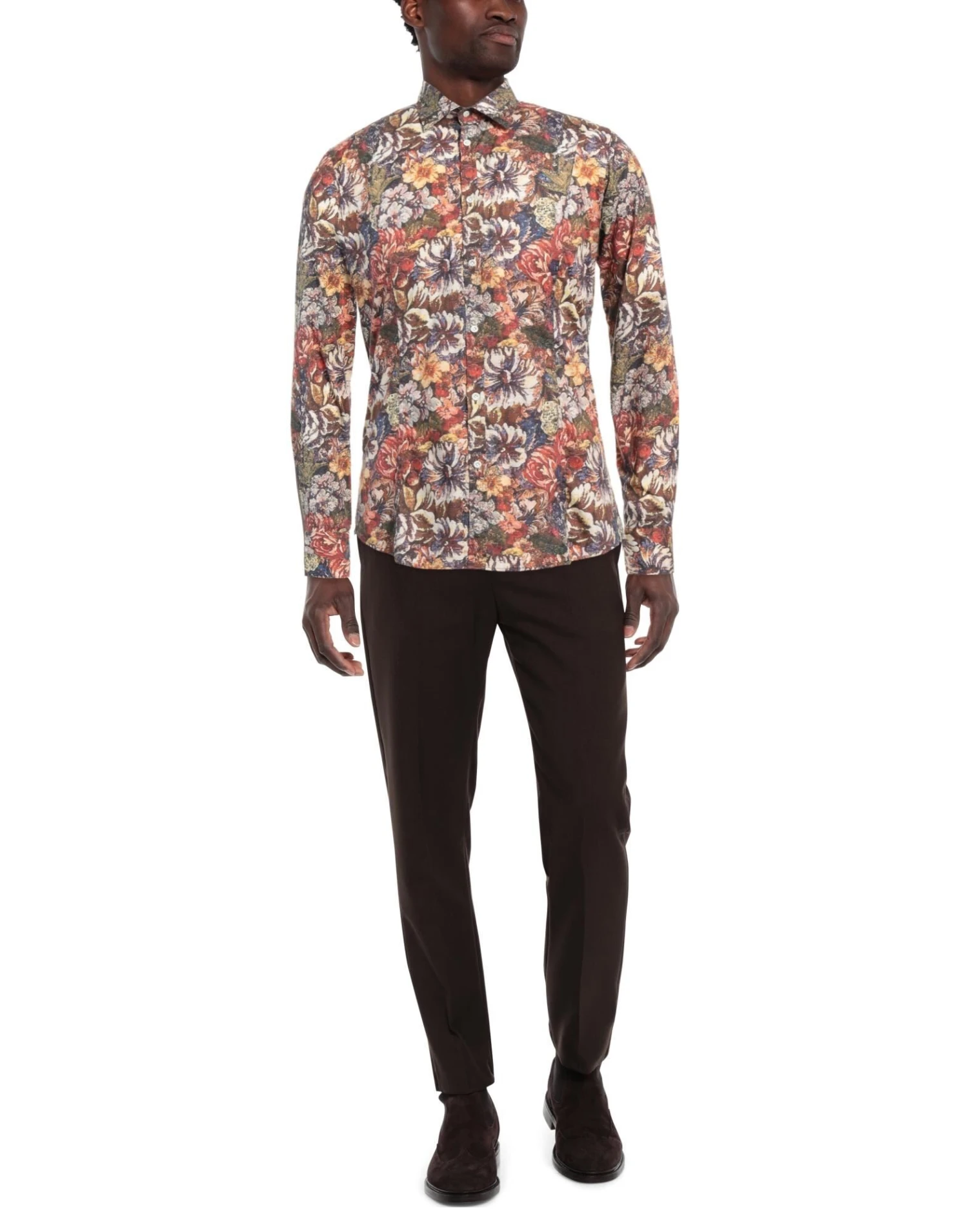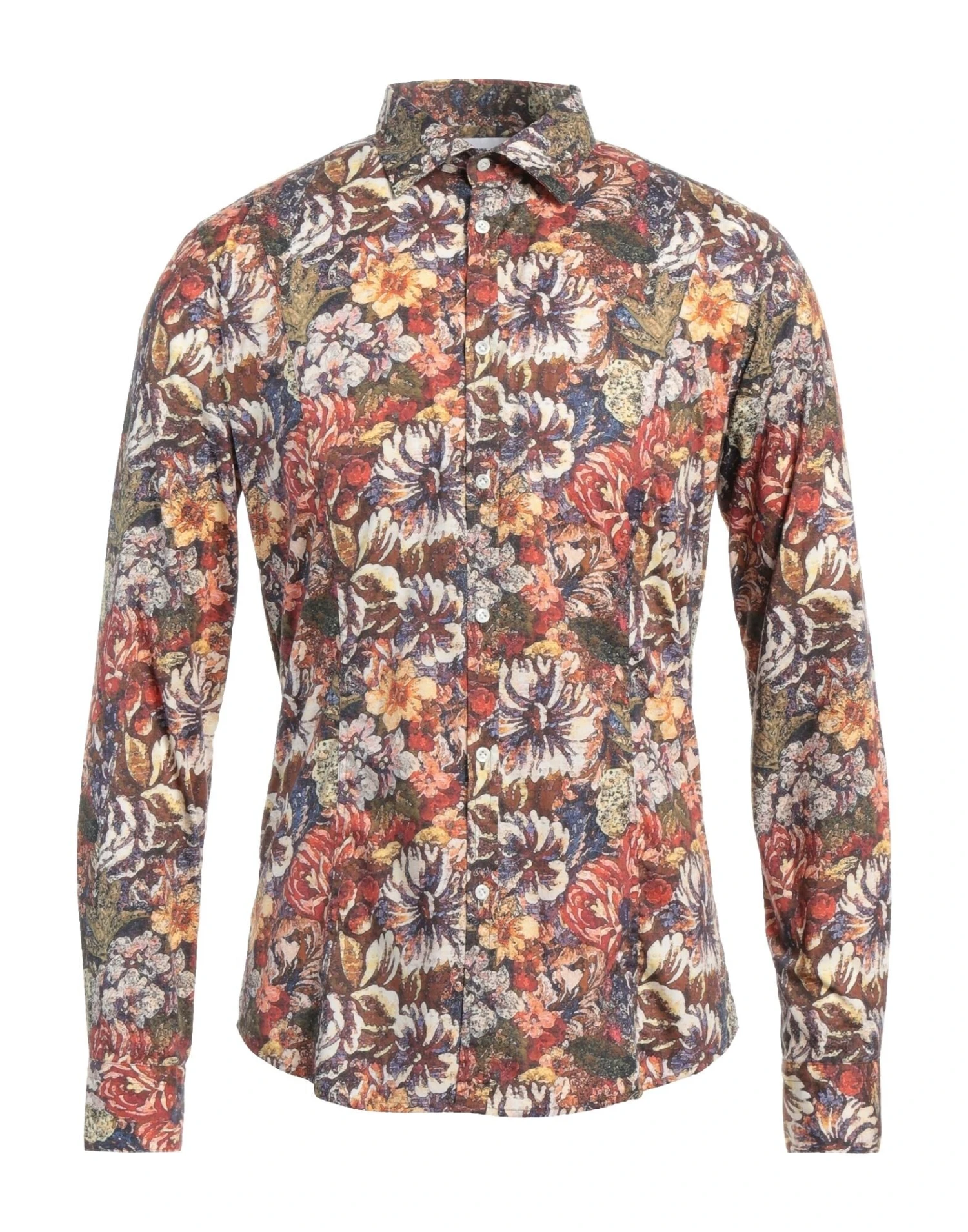 plain weave, no appliqués, floral design, classic neckline, long sleeves, buttoned cuffs, button closing, no pockets, stretch