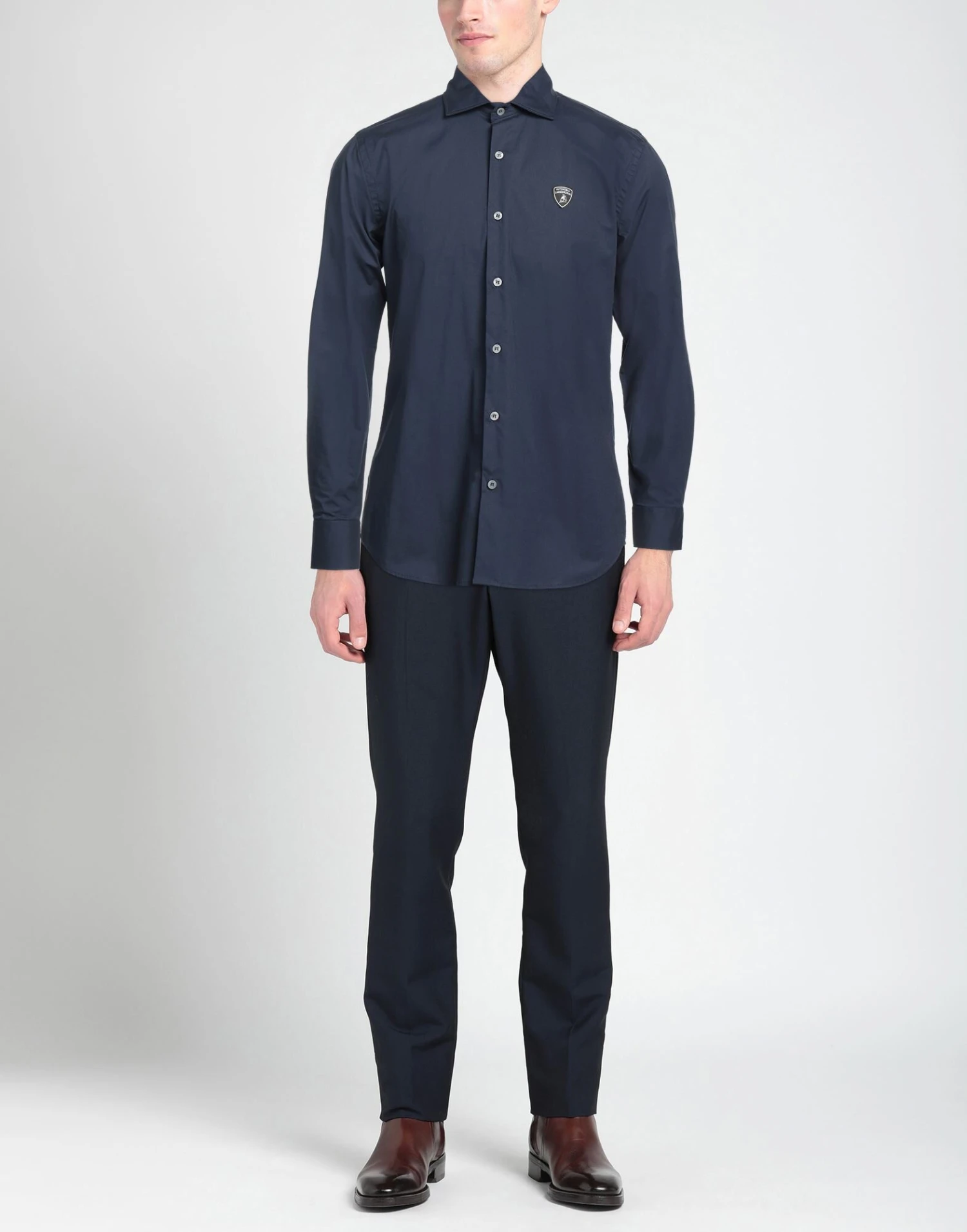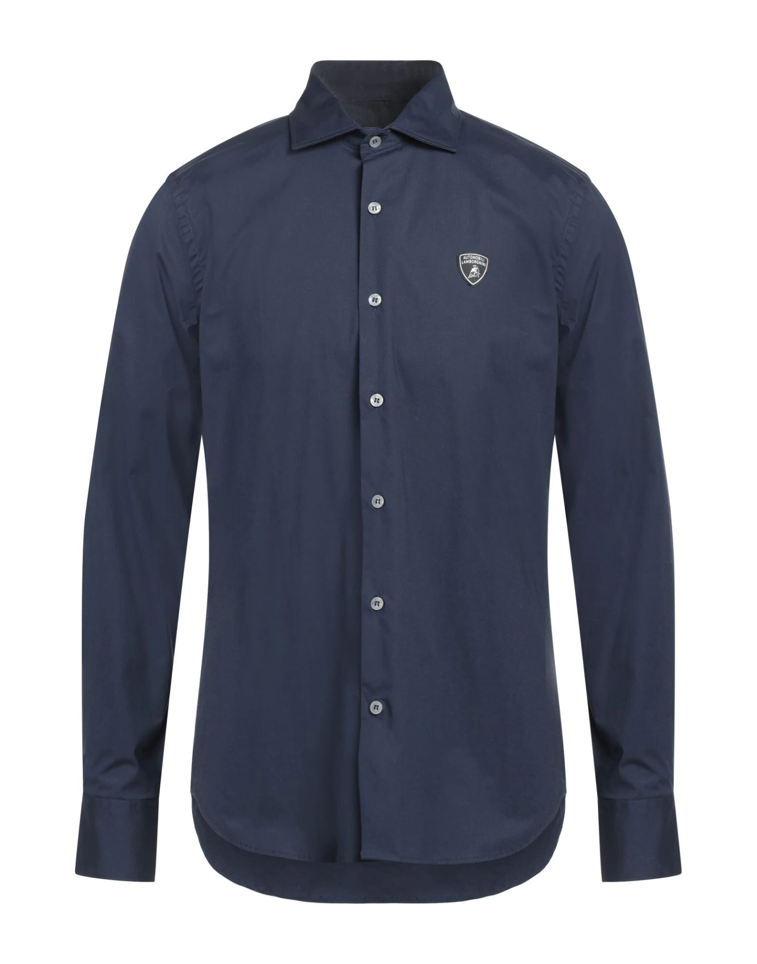 poplin, brand logo, solid color, mandarin collar, long sleeves, button closing, no pockets, stretch
