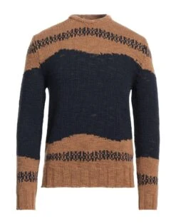 knitted, medium-weight knit, no appliqués, two-tone, round collar, long sleeves, no pockets