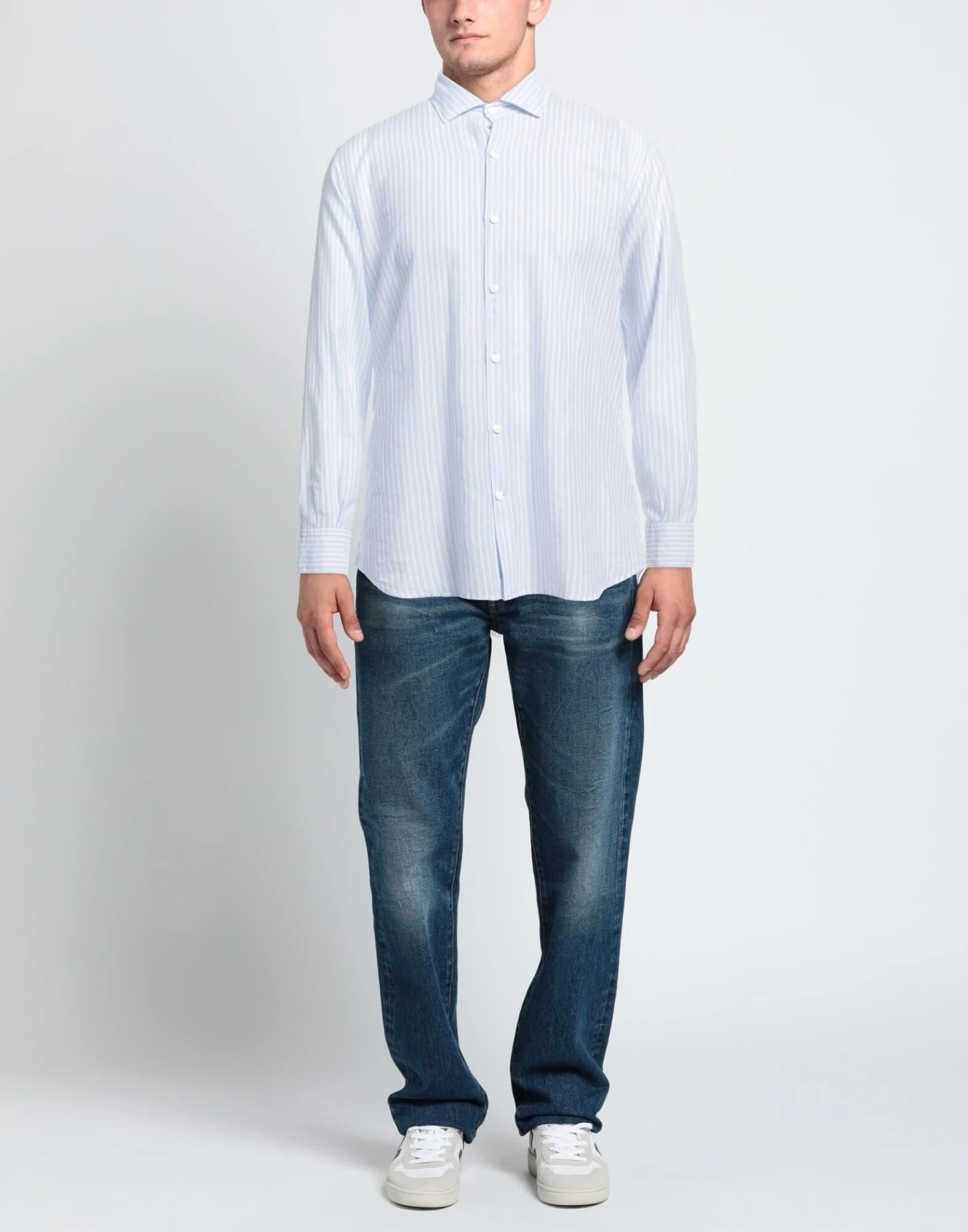 plain weave, brand logo, stripes, classic neckline, long sleeves, button closing, no pockets, small sized