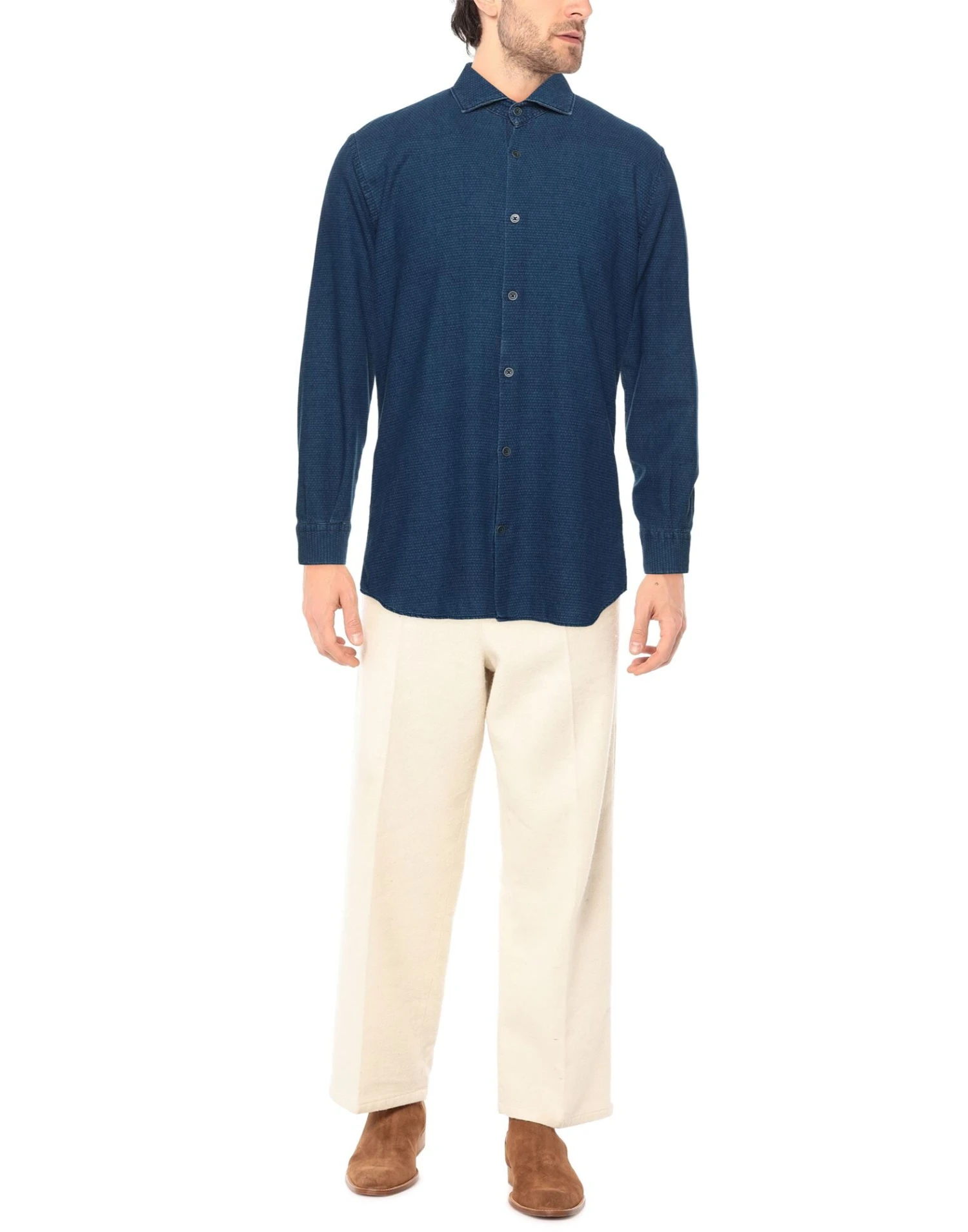 plain weave, no appliqués, two-tone, classic neckline, long sleeves, buttoned cuffs, button closing, no pockets, small sized