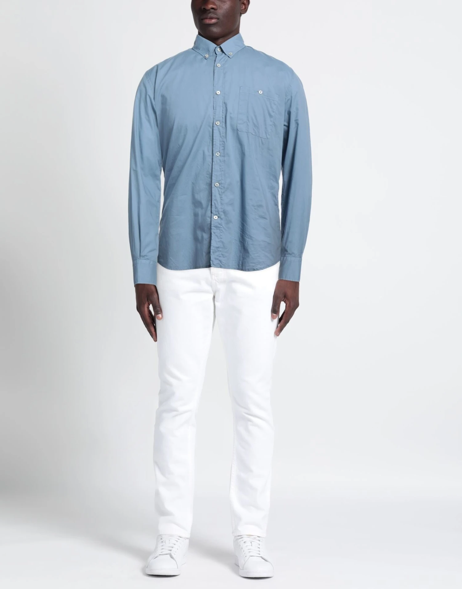 plain weave, no appliqués, solid color, button-down collar, long sleeves, buttoned cuffs, button closing, single chest pocket, small sized