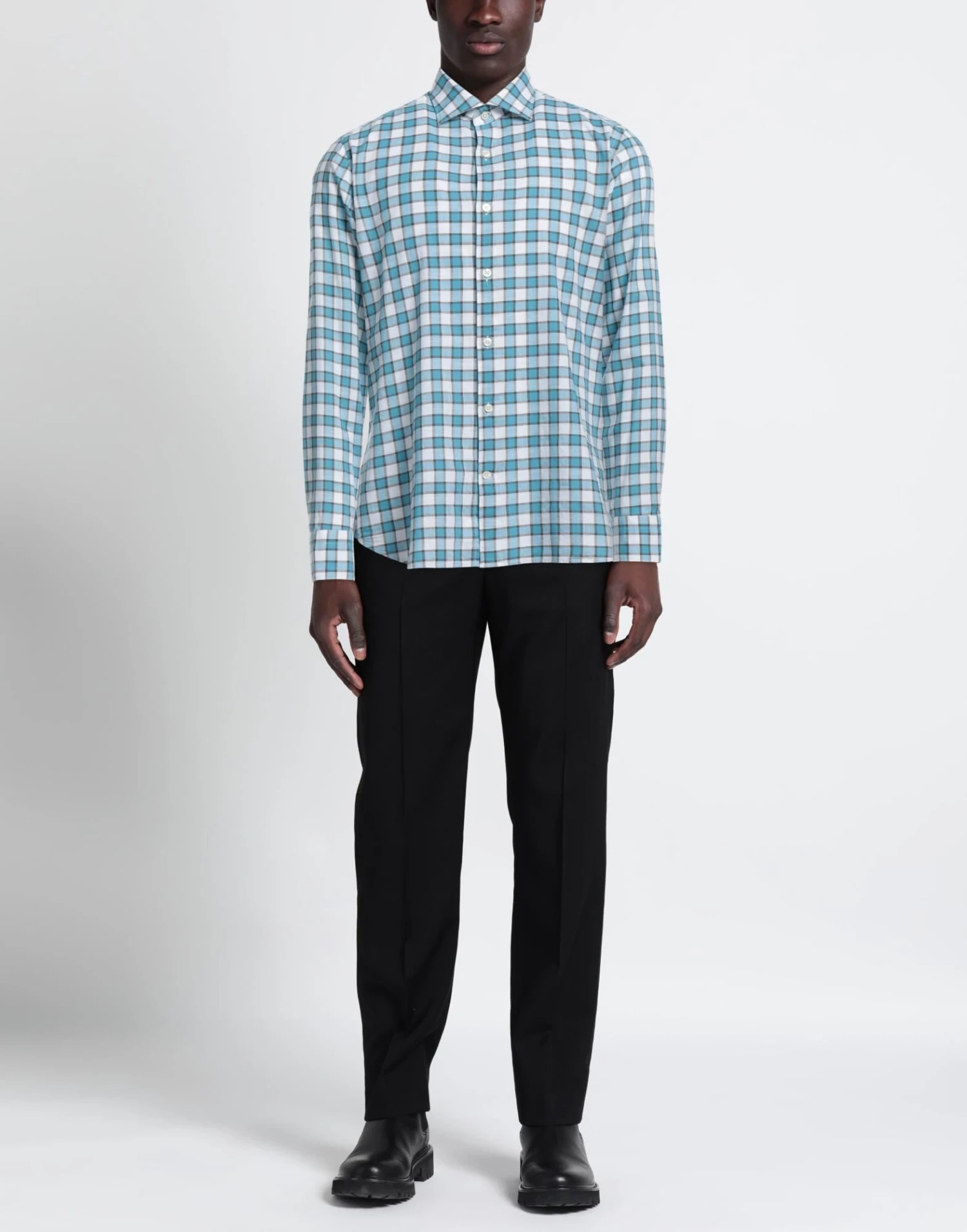 plain weave, no appliqués, checked, classic neckline, long sleeves, button closing, no pockets
