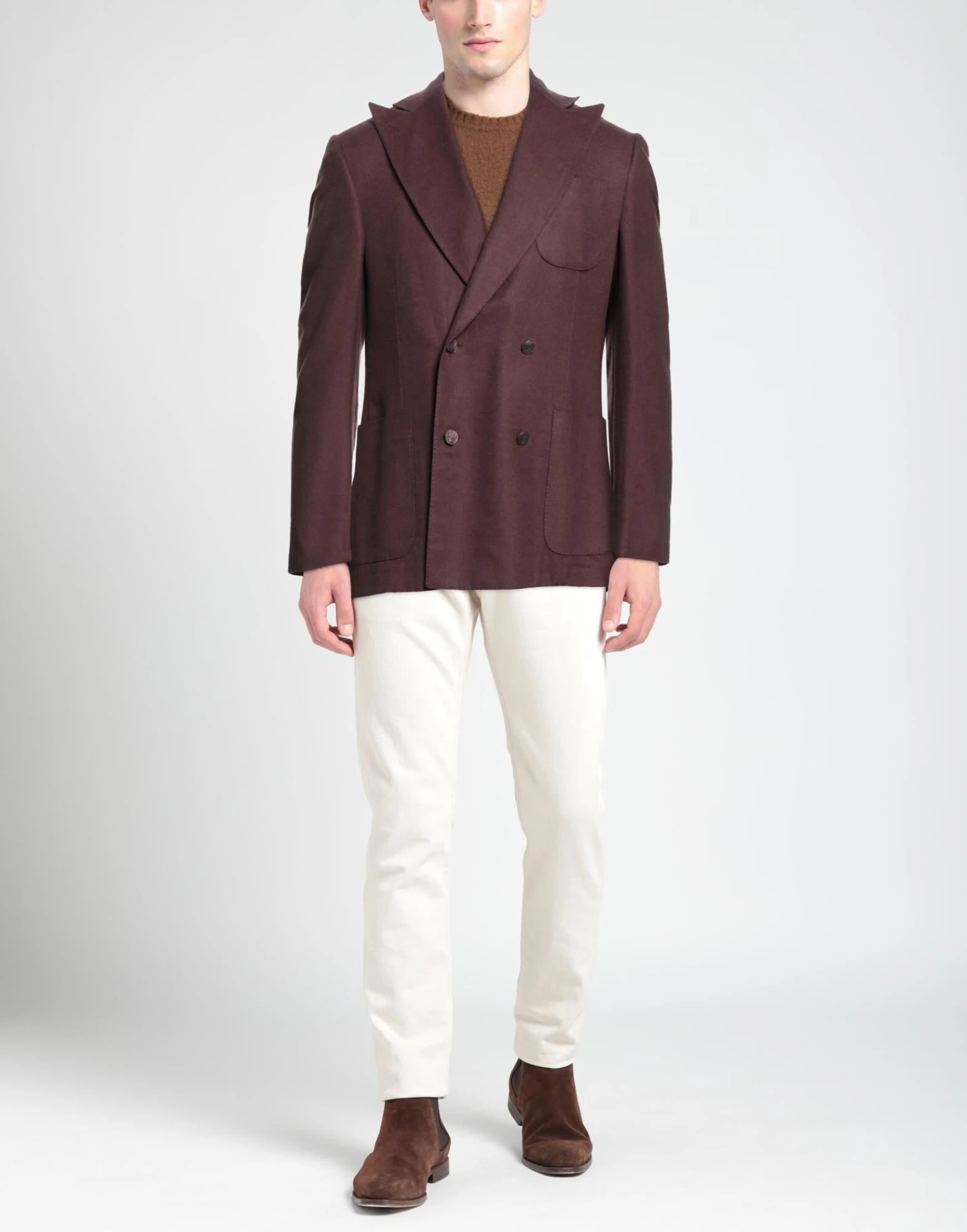 flannel, no appliqués, solid color, lapel collar, single-breasted , long sleeves, partially lined interior, button closing, multipockets, dual back vents, single-breasted jacket