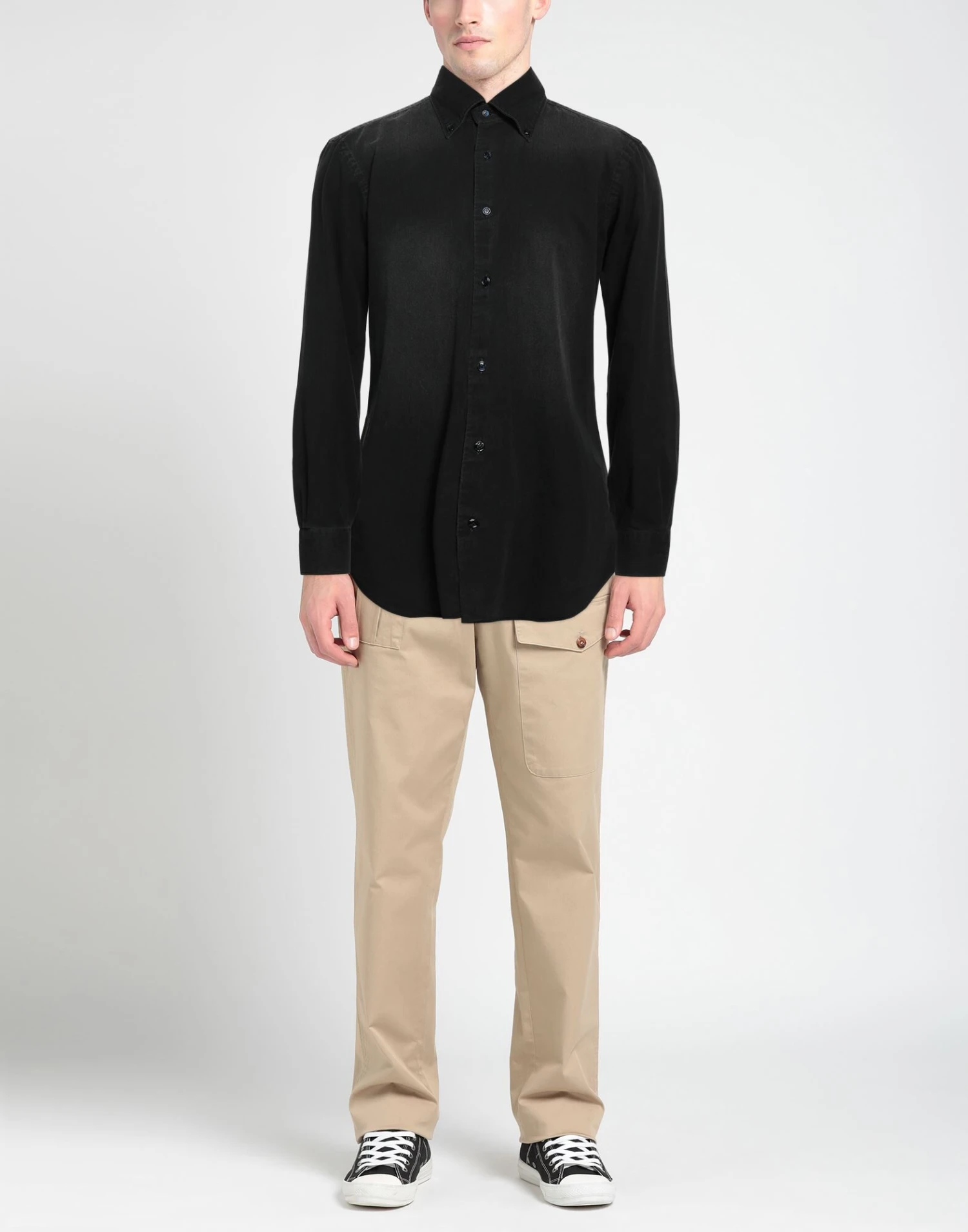 Button closing, Solid color, Long sleeves, Classic Neckline