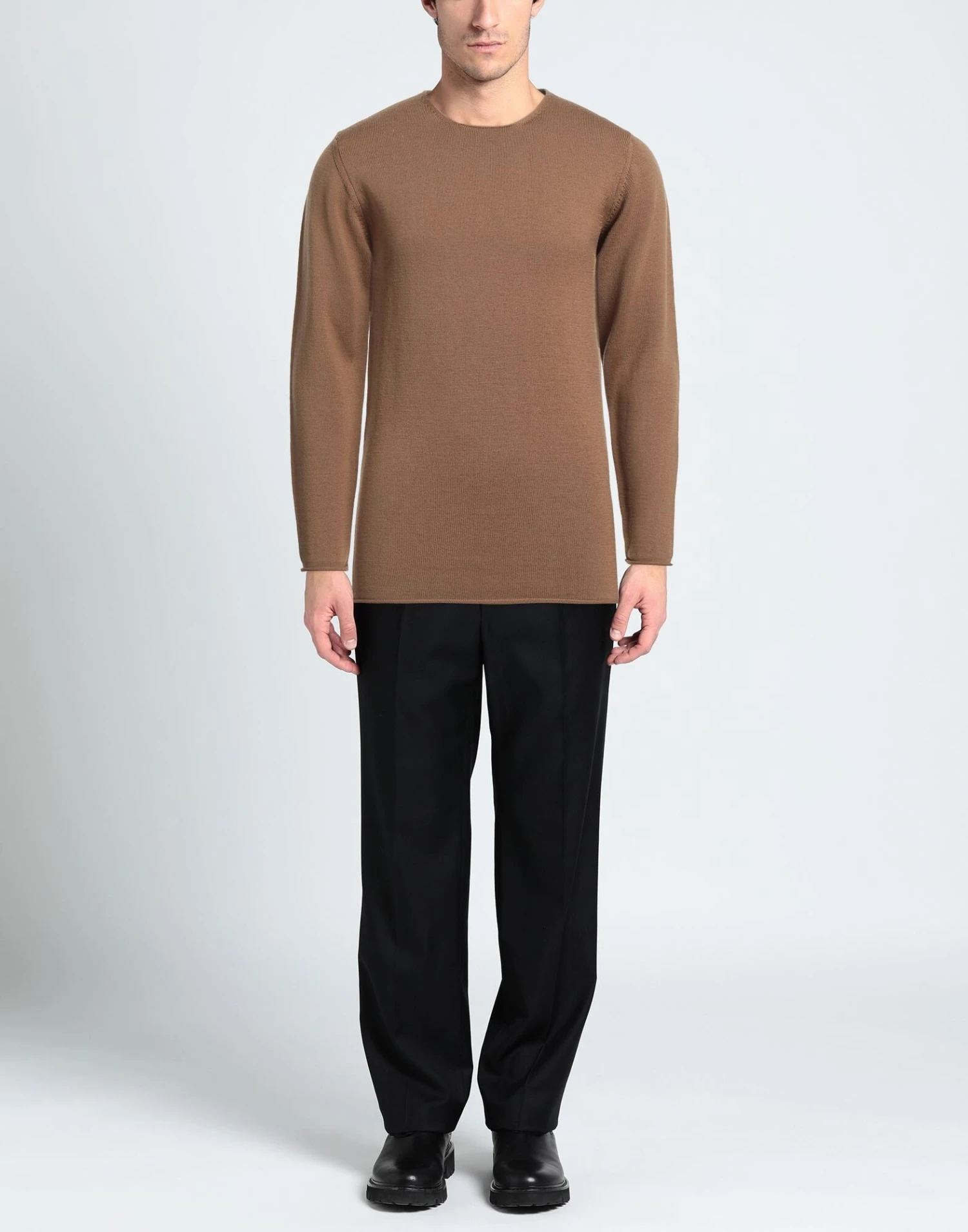 knitted, medium-weight knit, no appliqués, solid color, round collar, long sleeves, no pockets