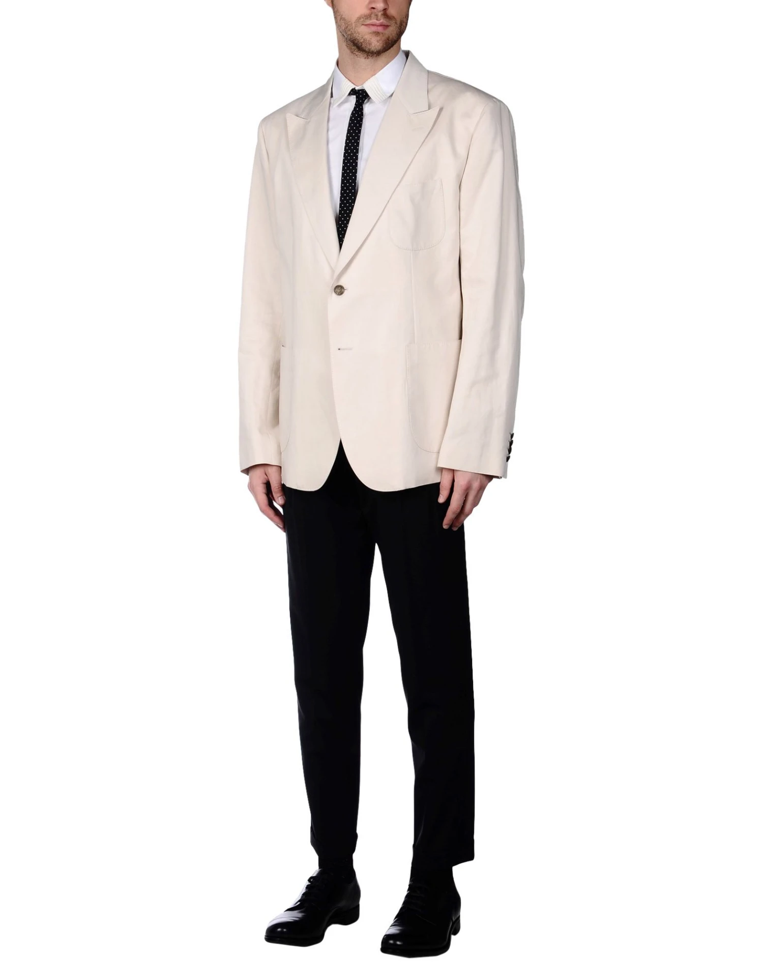 plain weave, no appliqués, basic solid color, lapel collar, single-breasted , 2 buttons, single chest pocket, multipockets, long sleeves, semi-lined, two inside pockets, rear split
