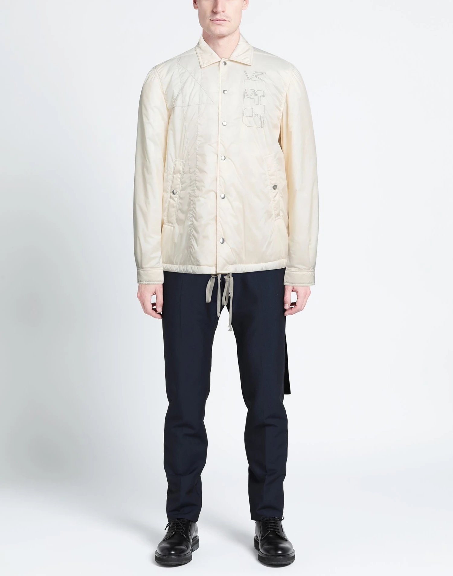 techno fabric, brand logo, solid colour with appliqués, classic neckline, long sleeves, snap button cuffs, snap buttons fastening, multipockets, pocket with snap fasteners, drawstring hem, overshirt