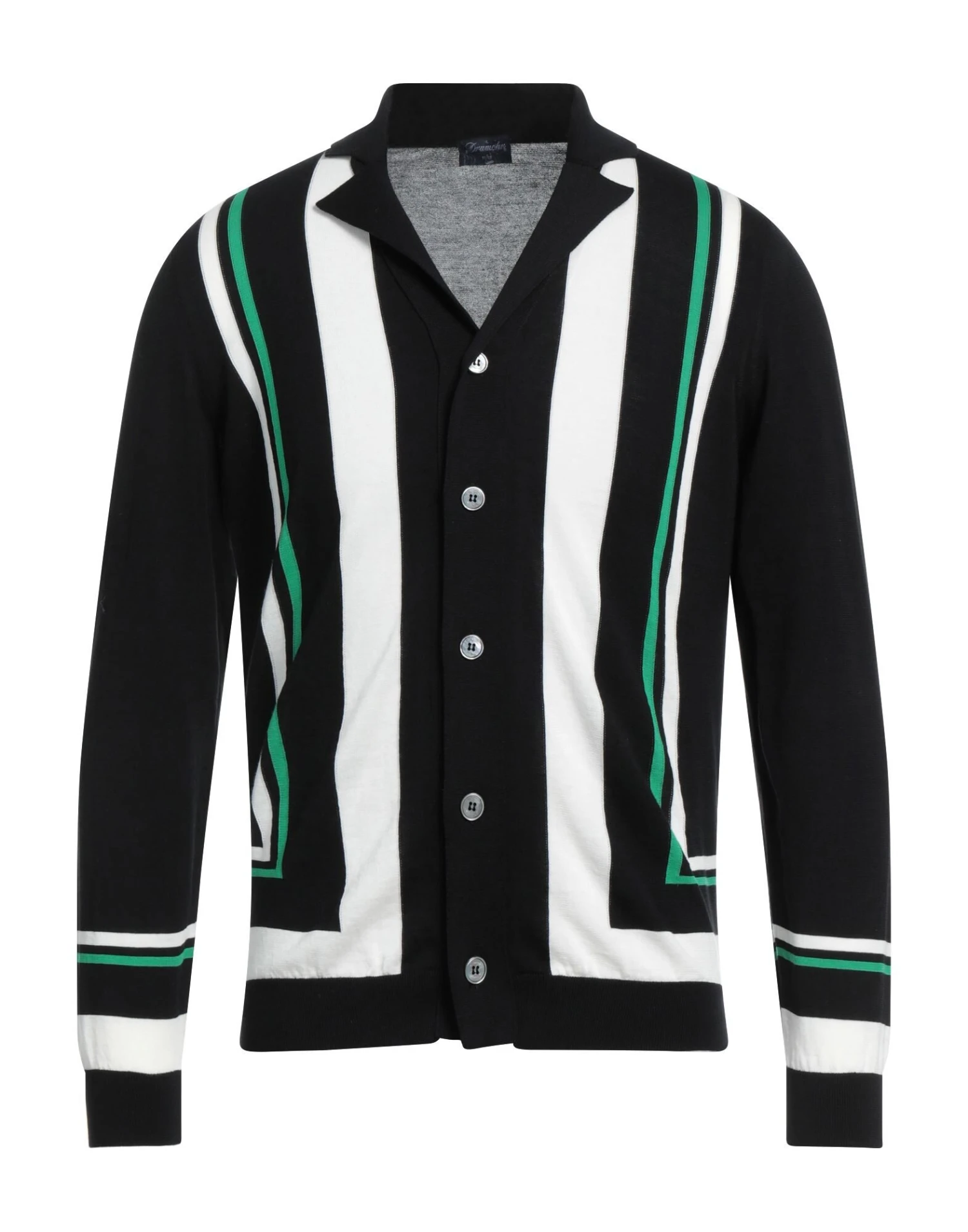 knitted, lightweight knit, no appliqués, multicolor pattern, stripes, lapel collar, long sleeves, button closing, no pockets