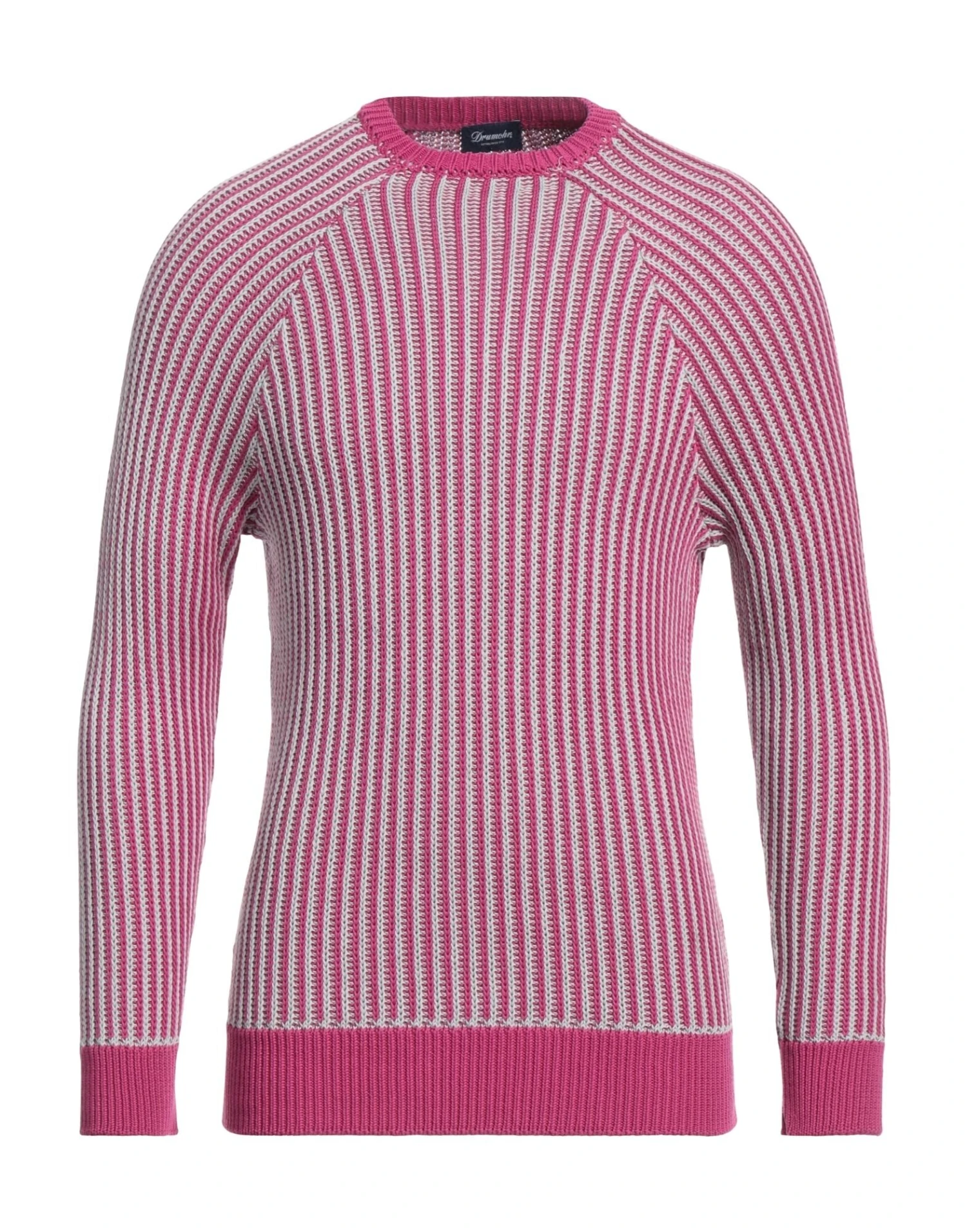 knitted, ribbed, medium-weight knit, no appliqués, two-tone, stripes, round collar, long sleeves, no pockets