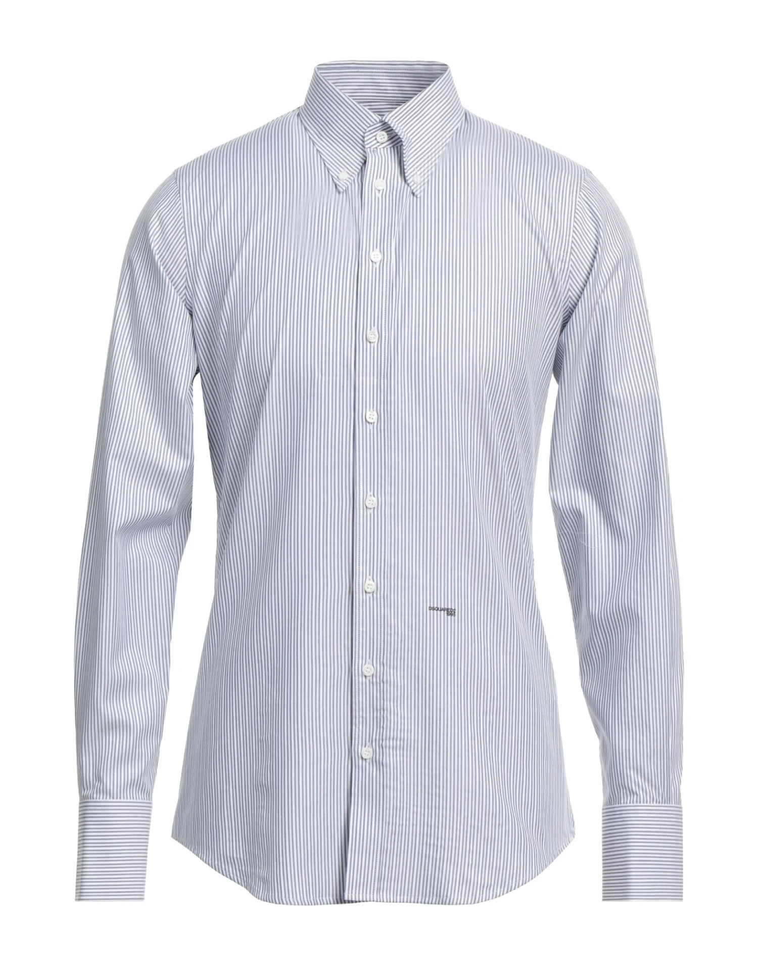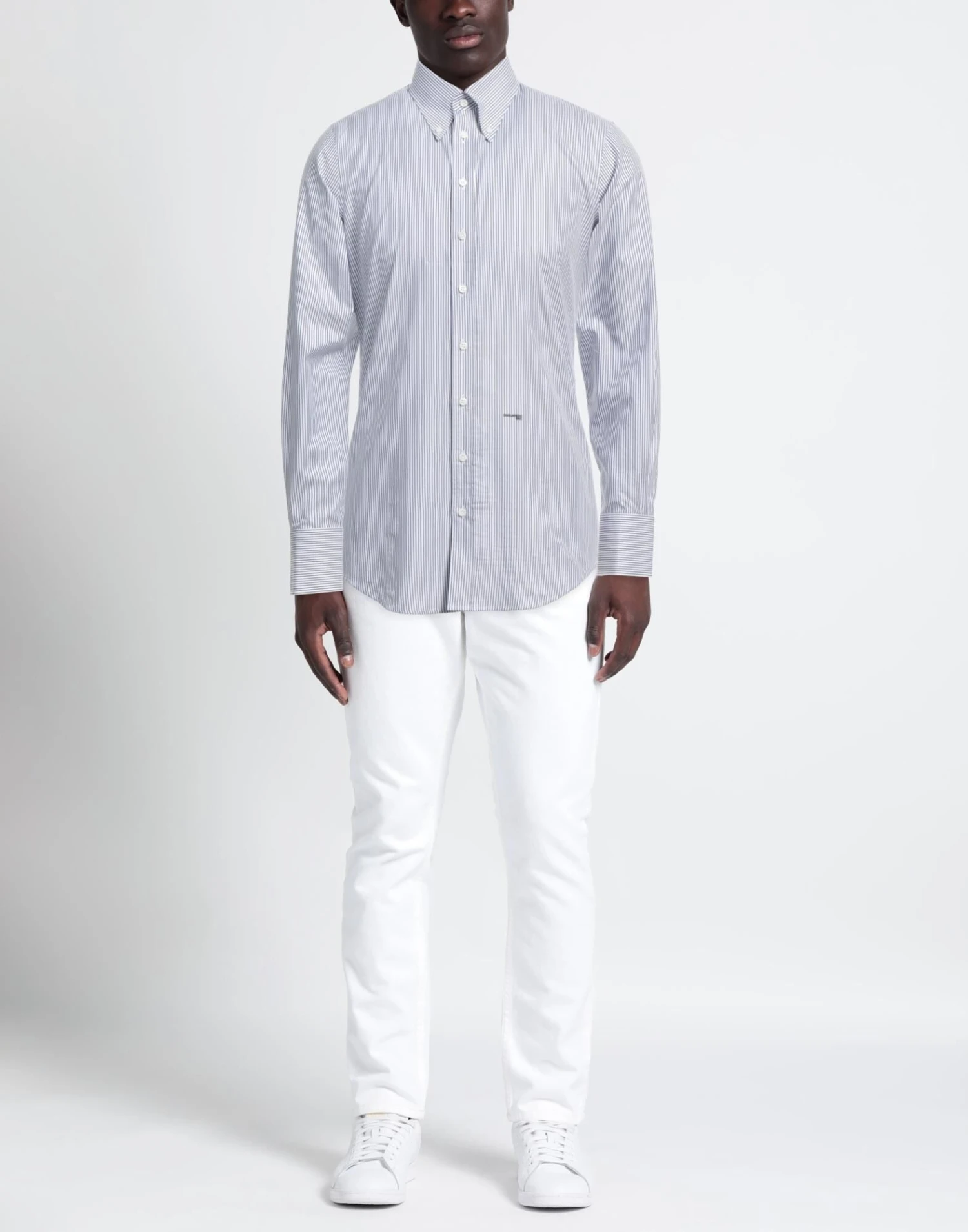 plain weave, brand logo, stripes, two-tone, button-down collar, long sleeves, button closing, no pockets, contains non-textile parts of animal origin