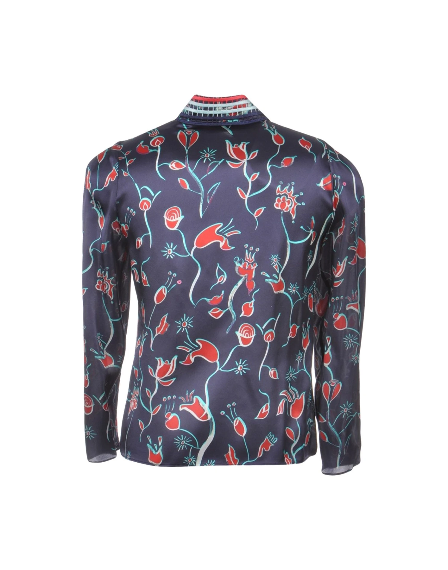 satin, no appliqués, multicolor pattern, front closure, button closing, long sleeves, classic neckline, no pockets, stretch
