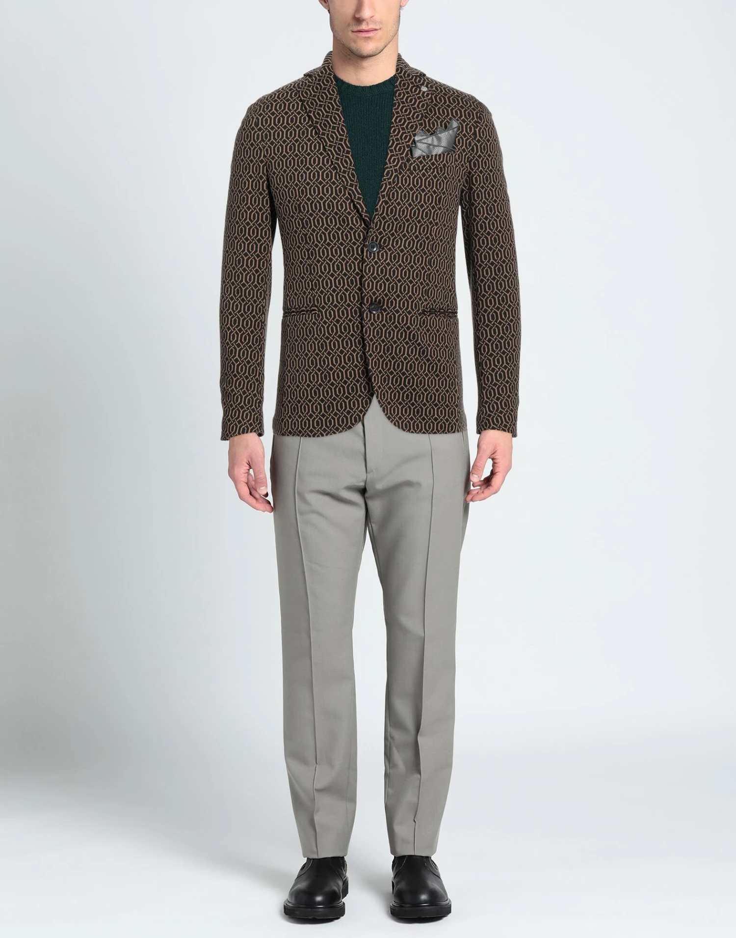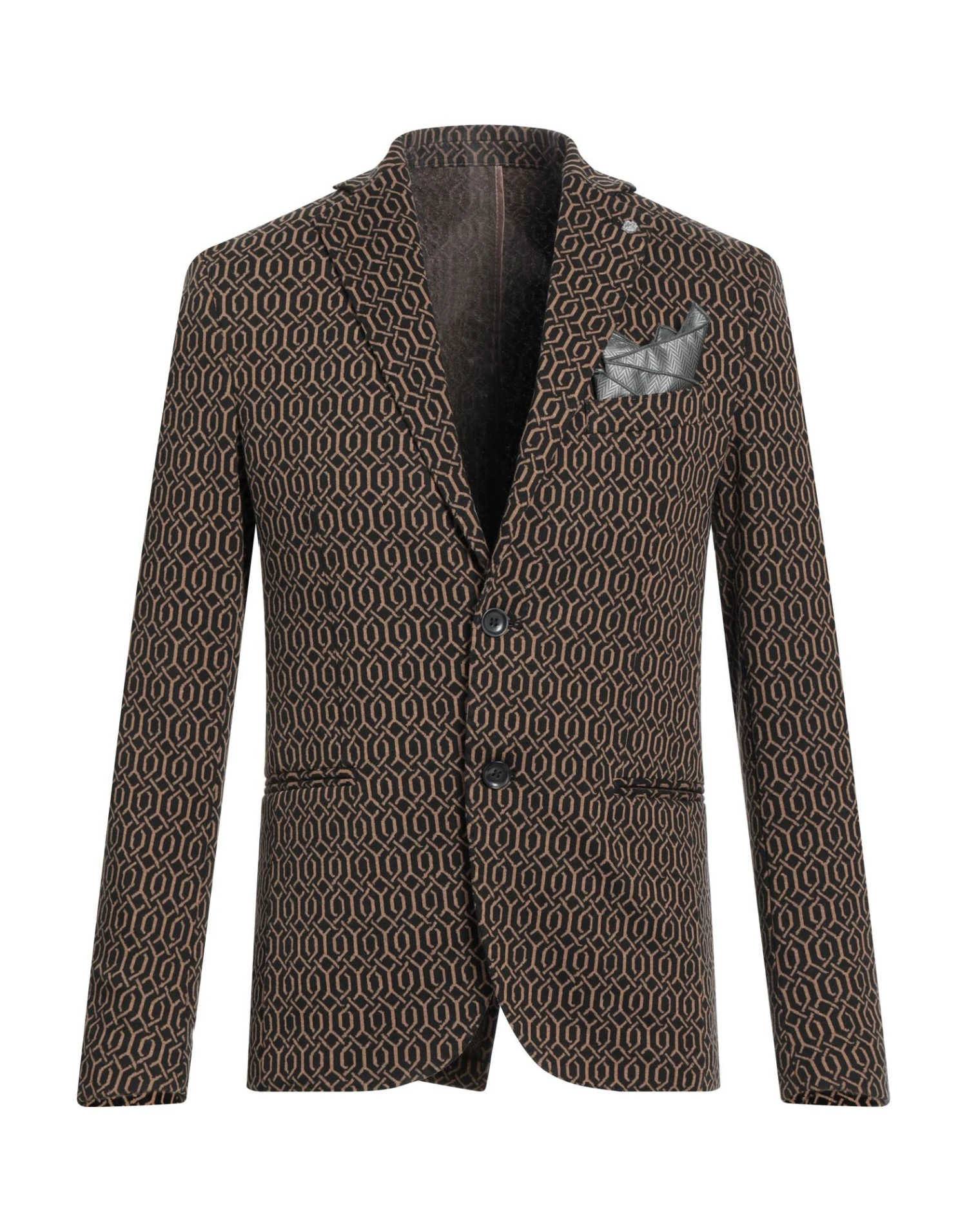 jersey, brooch, two-tone, lapel collar, single-breasted , long sleeves, partially lined interior, button closing, multipockets, rear slit, stretch, single-breasted jacket