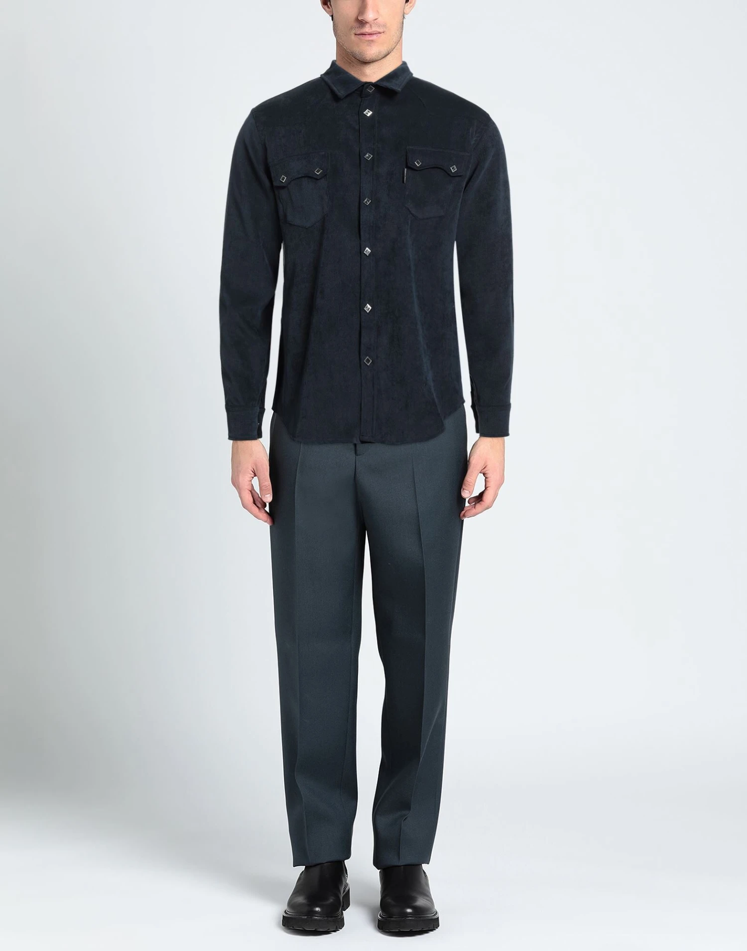velvet, ribbed, brand logo, solid color, classic neckline, long sleeves, unlined, snap buttons fastening, two breast pockets