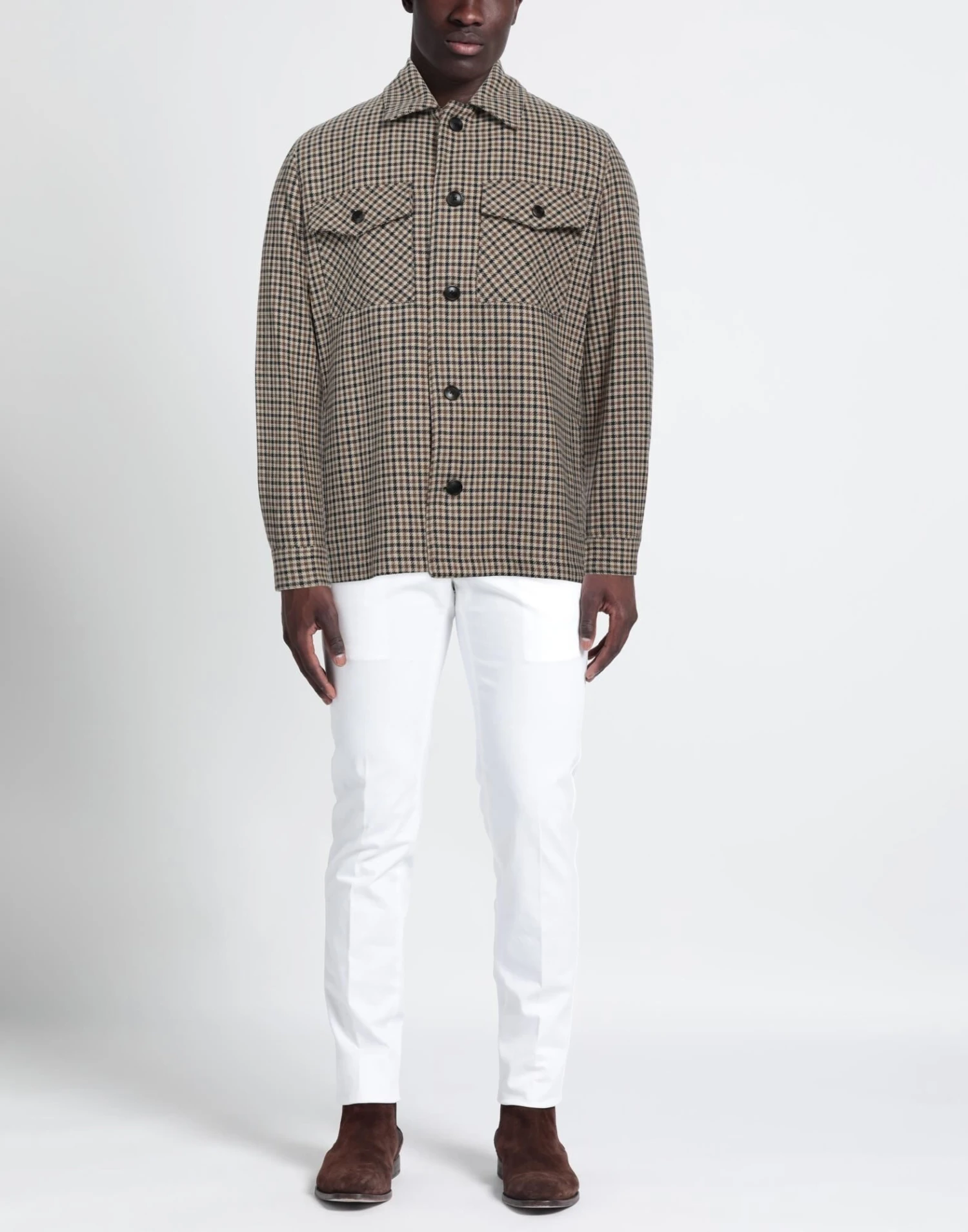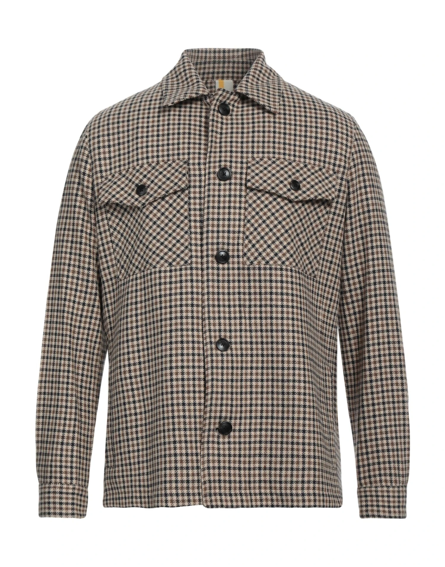flannel, no appliqués, houndstooth, classic neckline, long sleeves, buttoned cuffs, fully lined, button closing, two breast pockets