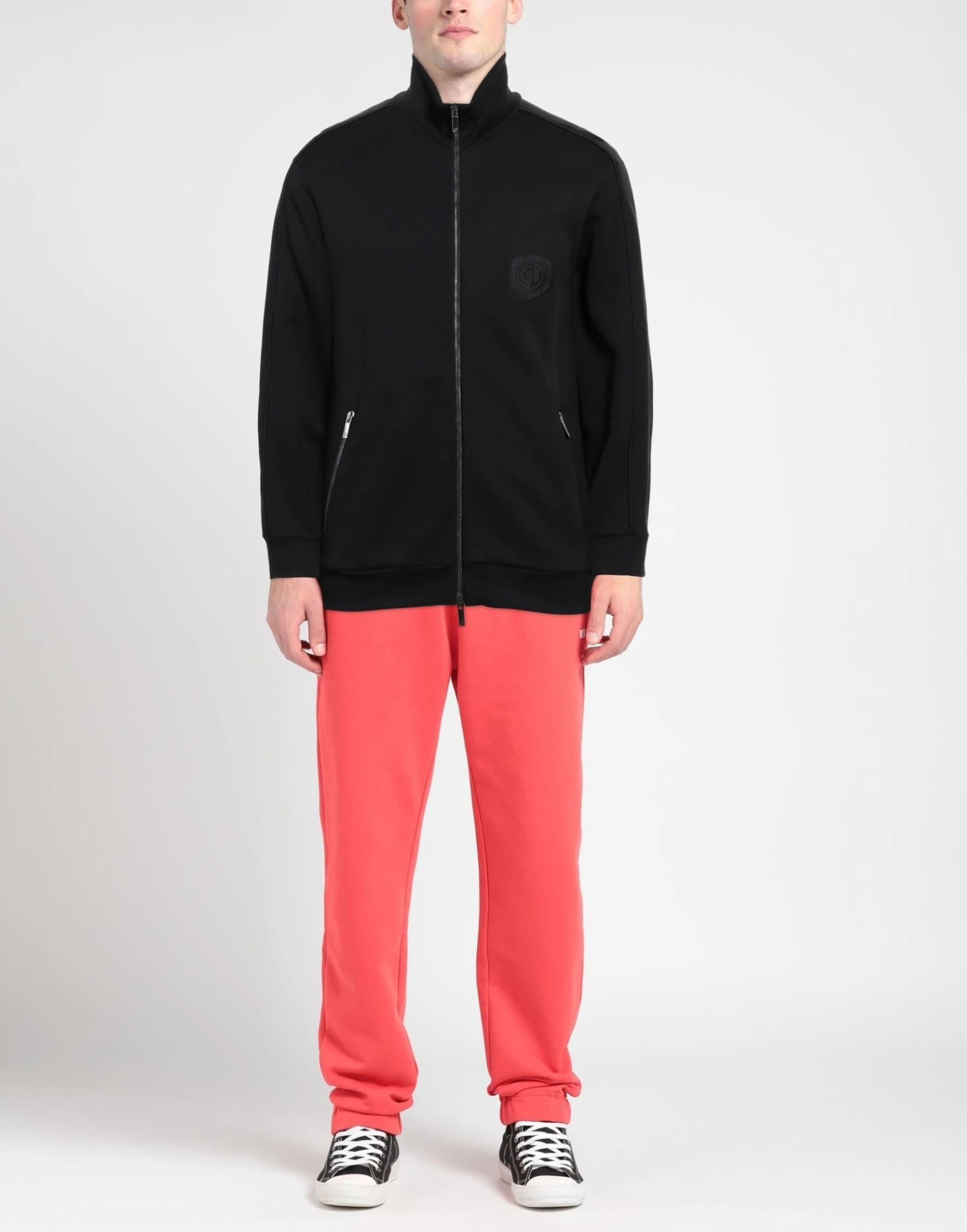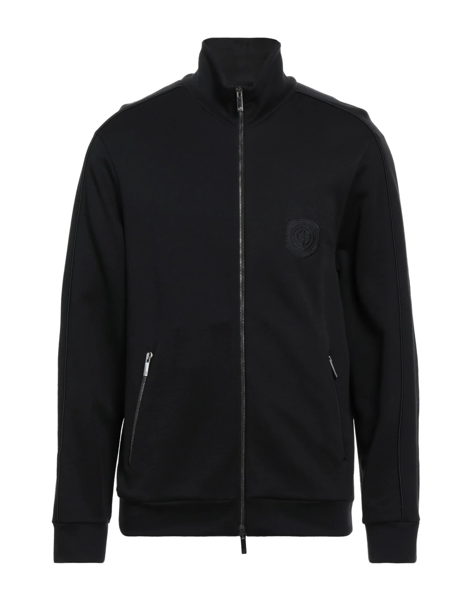 jersey, brand logo, solid color, turtleneck, long sleeves, zipper closure, multipockets