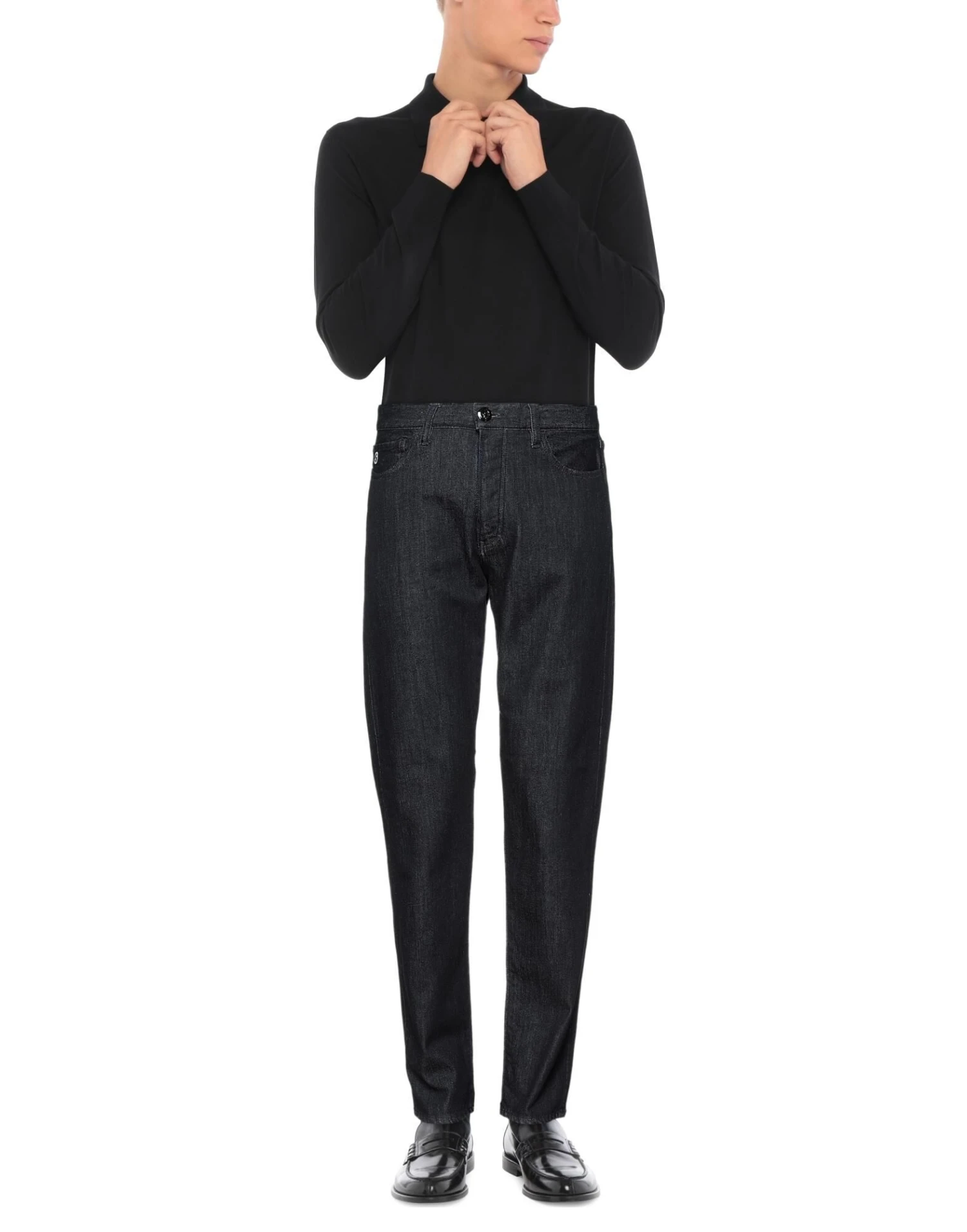 denim, etchings, brand logo, solid color, dark wash, high waisted, regular fit, button closing, multipockets, straight leg, large sized