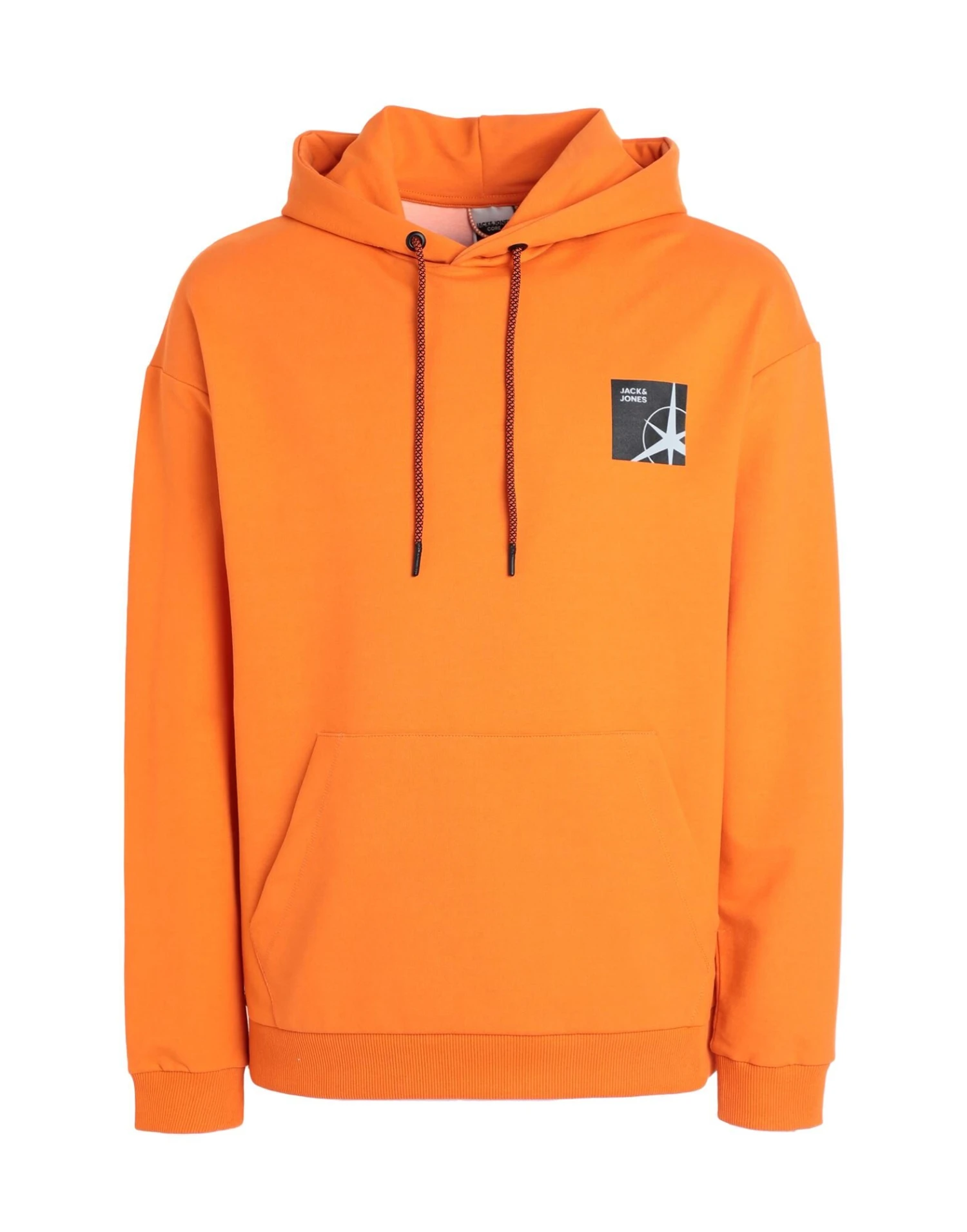 sweatshirt fleece, brand logo, solid color with print, hooded collar, long sleeves, ribbed cuffs, french terry lining, single pocket, stretch