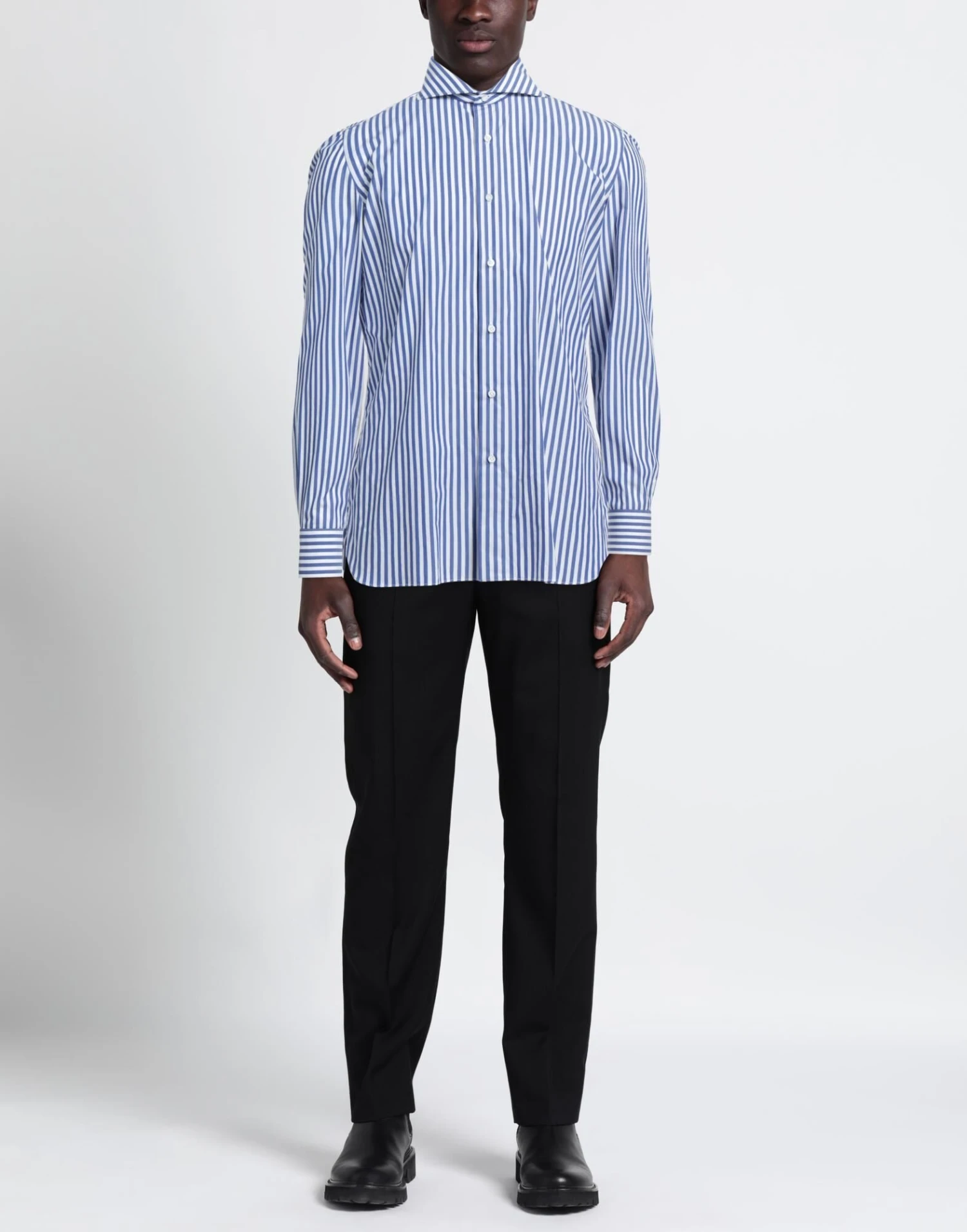 plain weave, brand logo, stripes, classic neckline, long sleeves, buttoned cuffs, button closing, no pockets