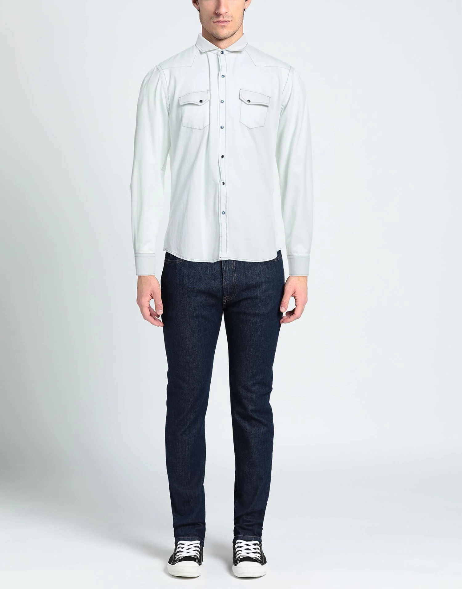 plain weave, brand logo, solid color, classic neckline, long sleeves, snap button cuffs, snap buttons fastening, two breast pockets