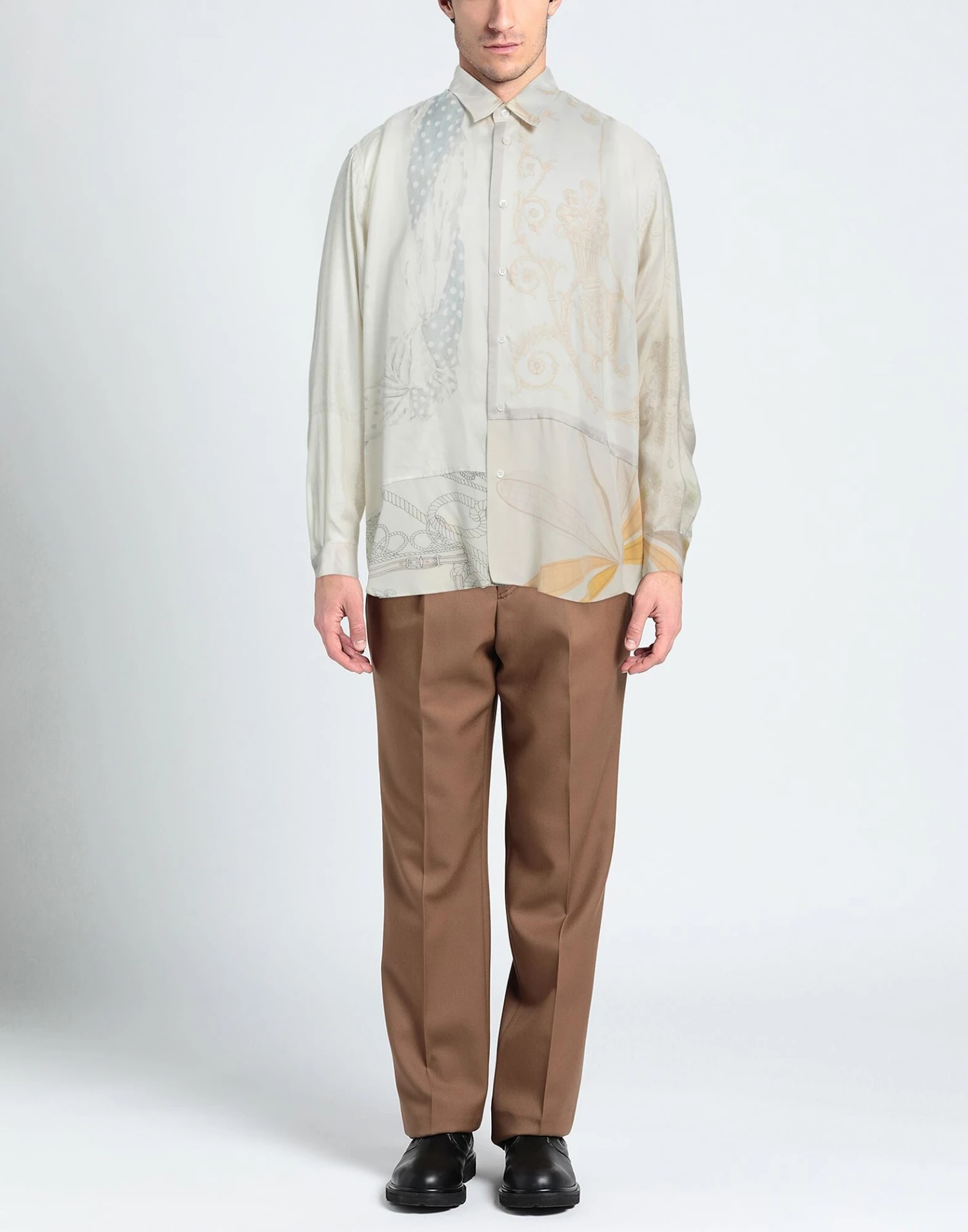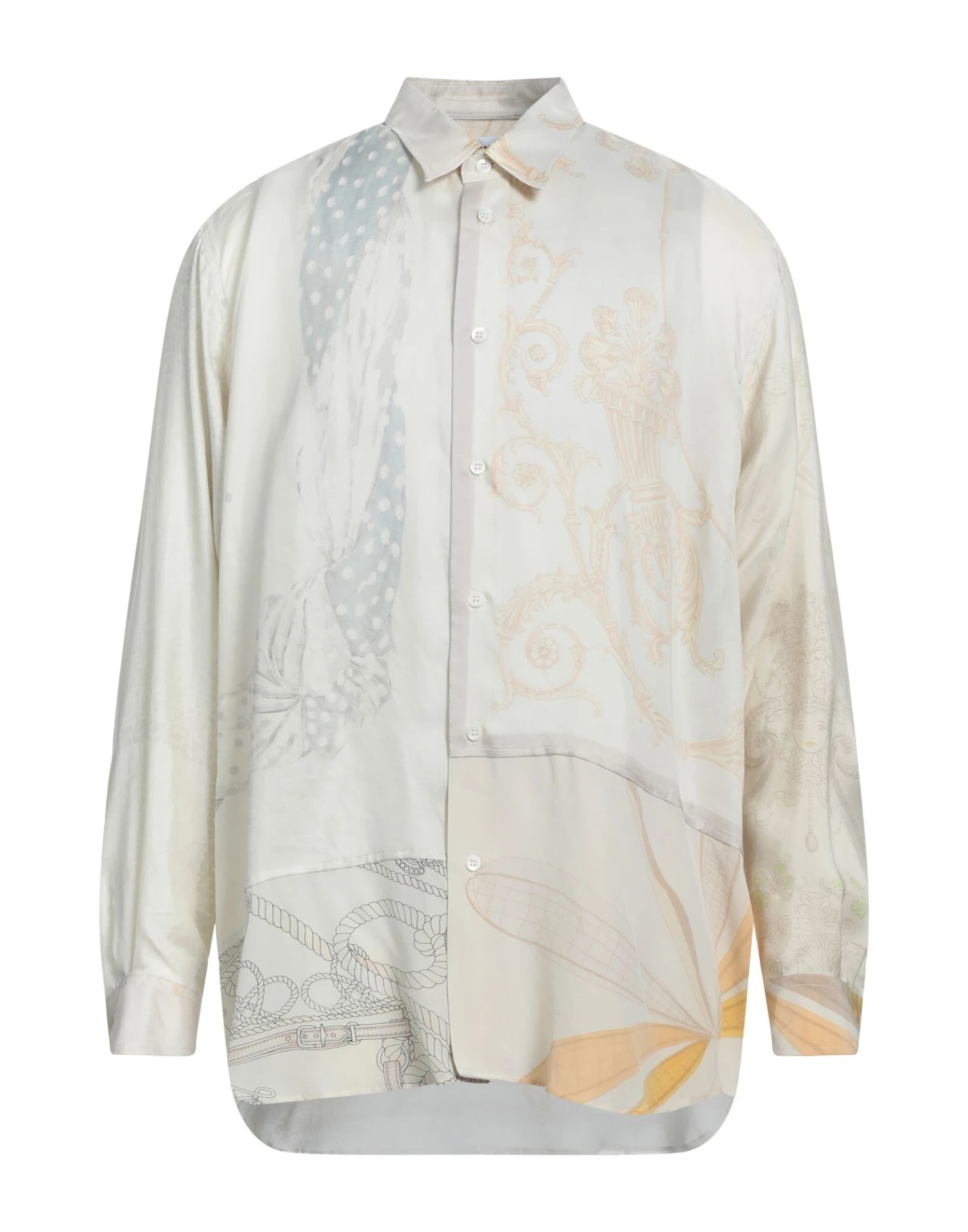 satin, no appliqués, floral design, polka-dot, classic neckline, long sleeves, buttoned cuffs, button closing, no pockets
