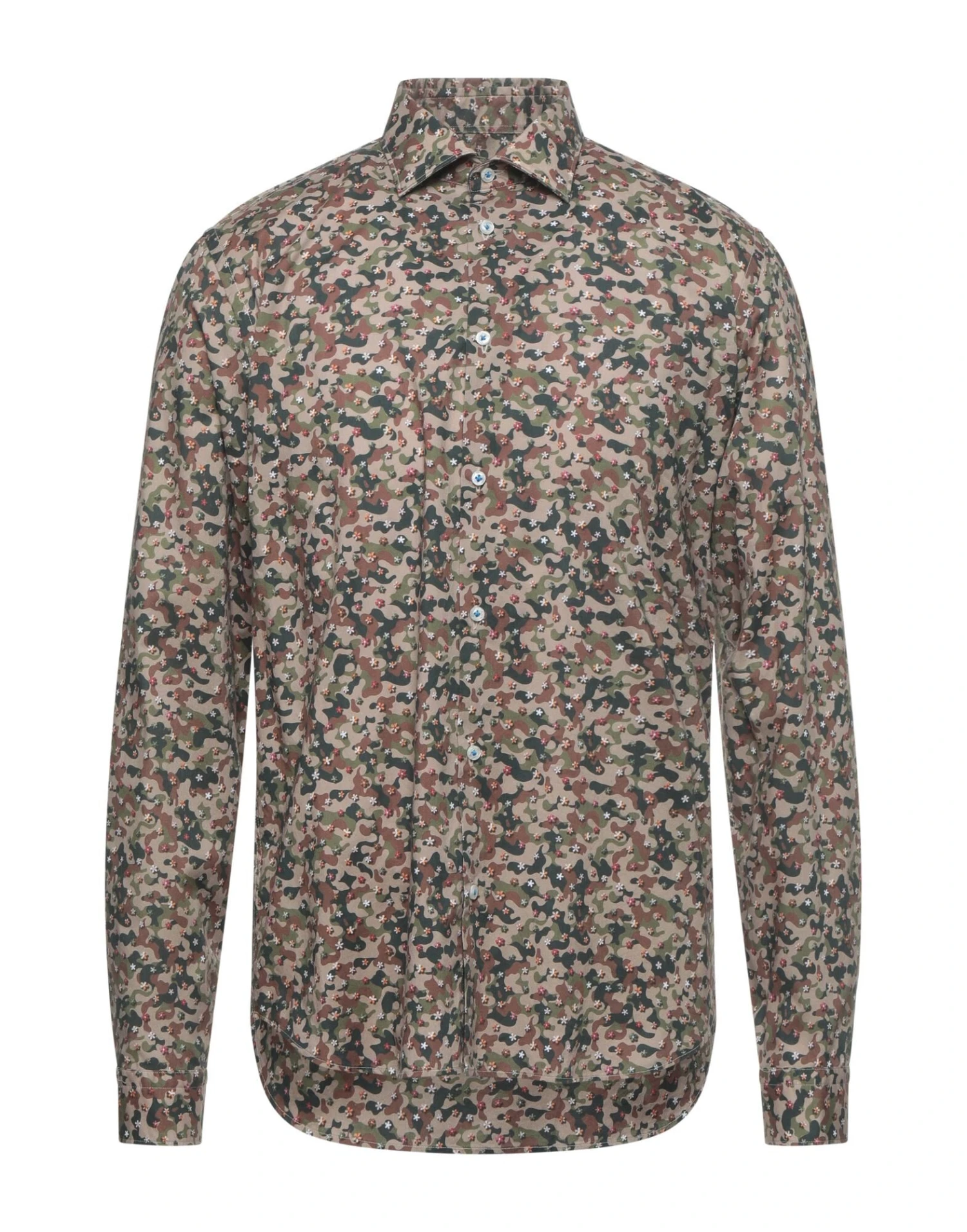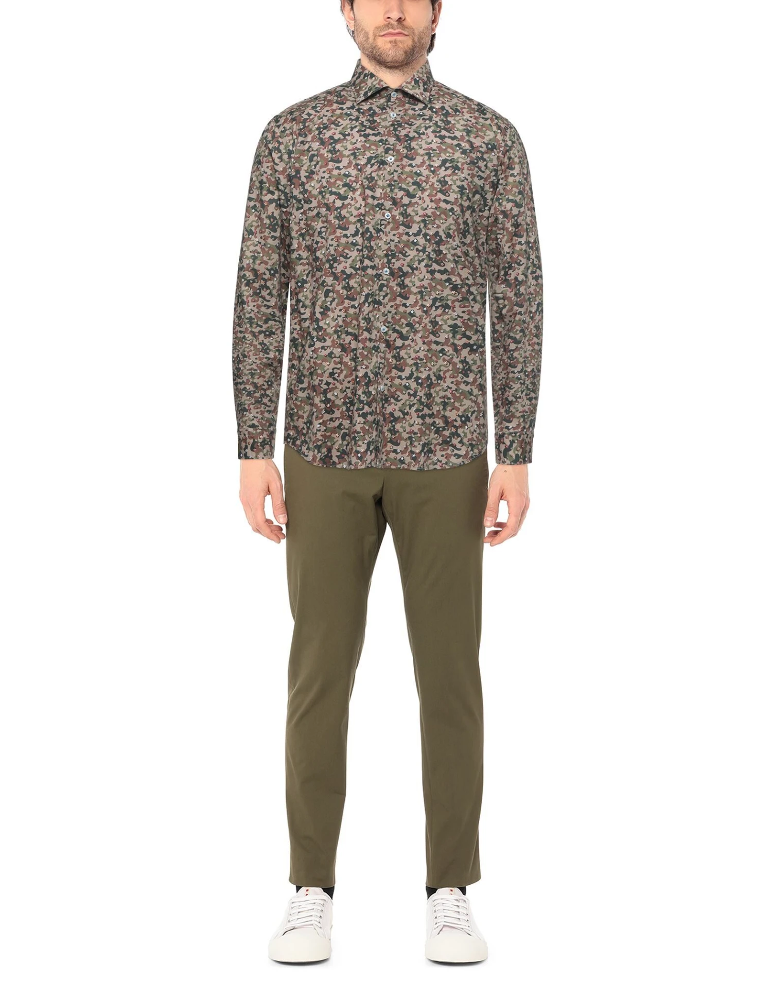 plain weave, no appliqués, camouflage, classic neckline, long sleeves, buttoned cuffs, button closing, no pockets, stretch, small sized