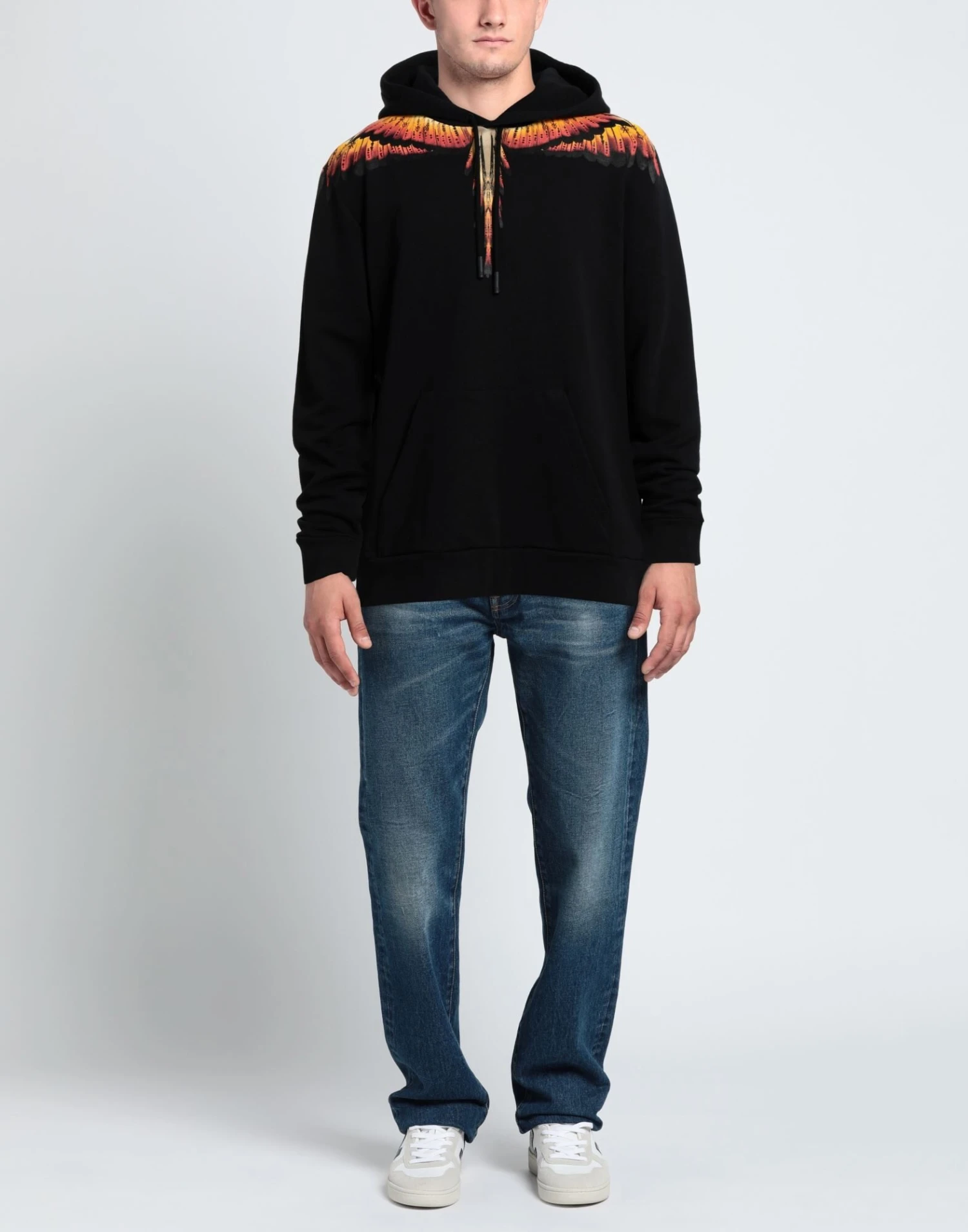 sweatshirt fleece, brand logo, solid color with print, hooded collar, long sleeves, single pocket, french terry lining