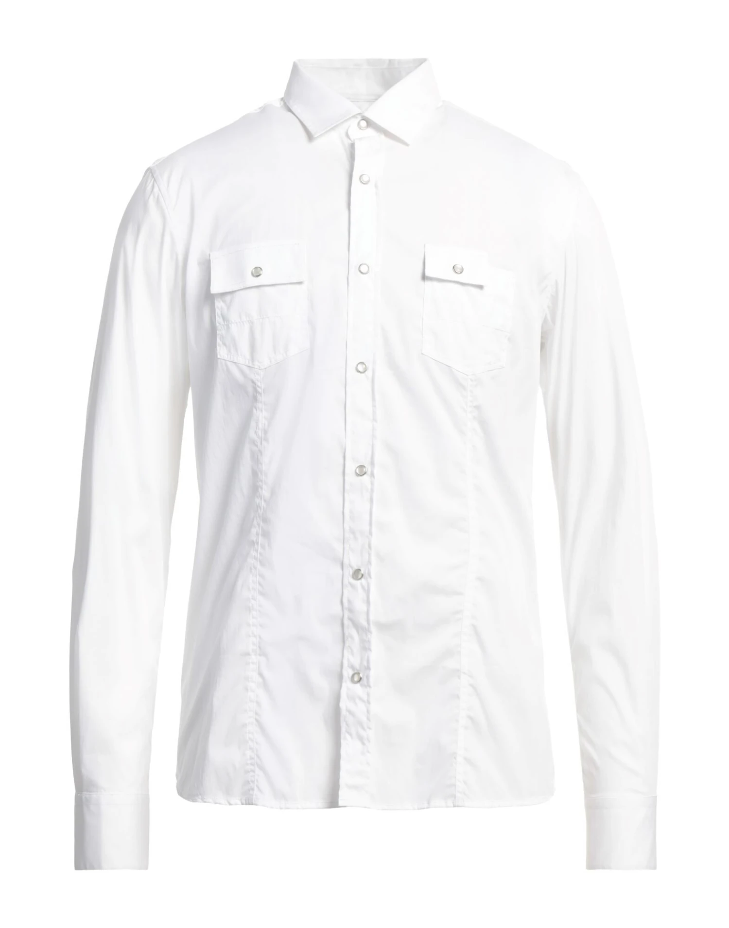 poplin, no appliqués, solid color, classic neckline, long sleeves, snap buttons fastening, two breast pockets, stretch