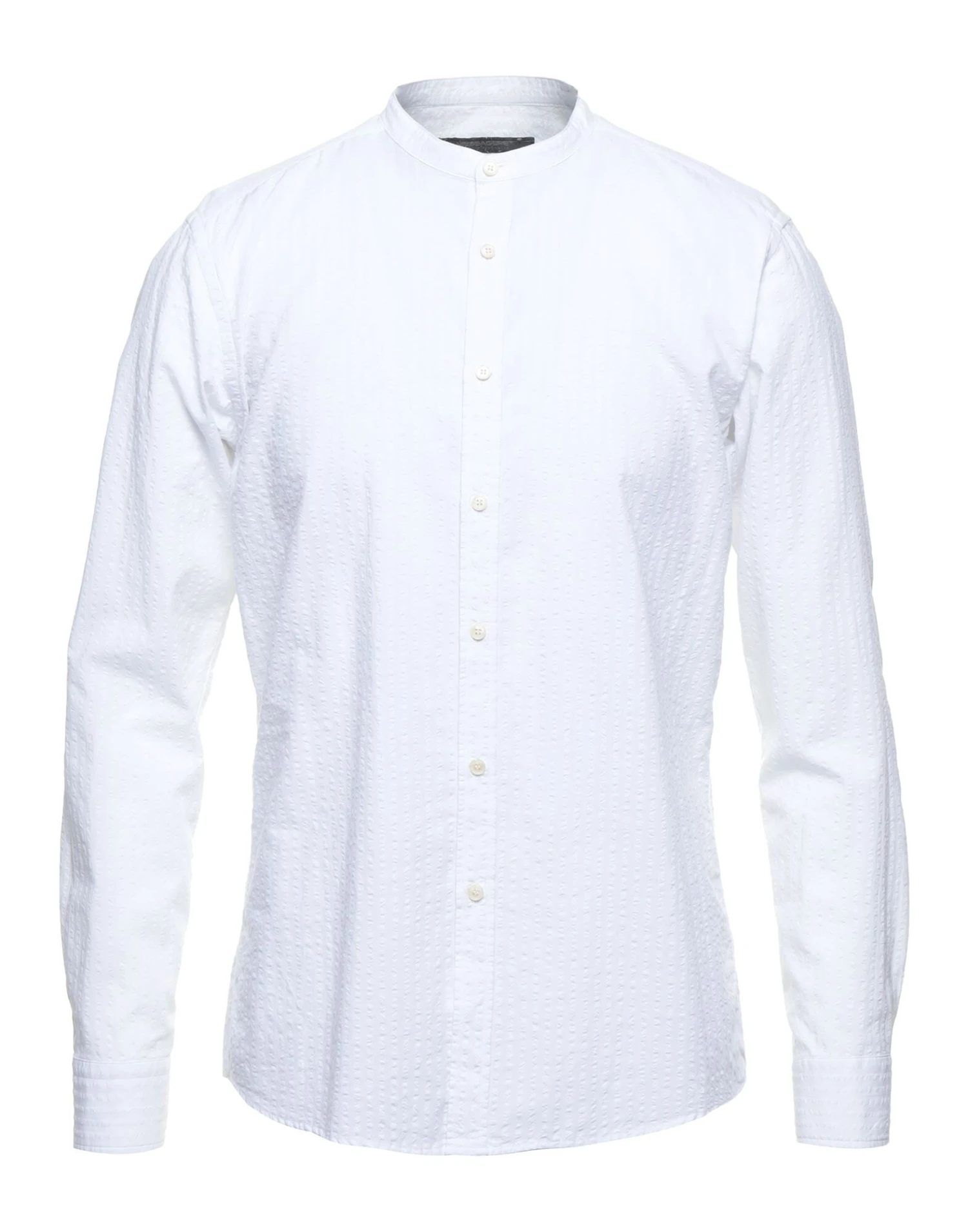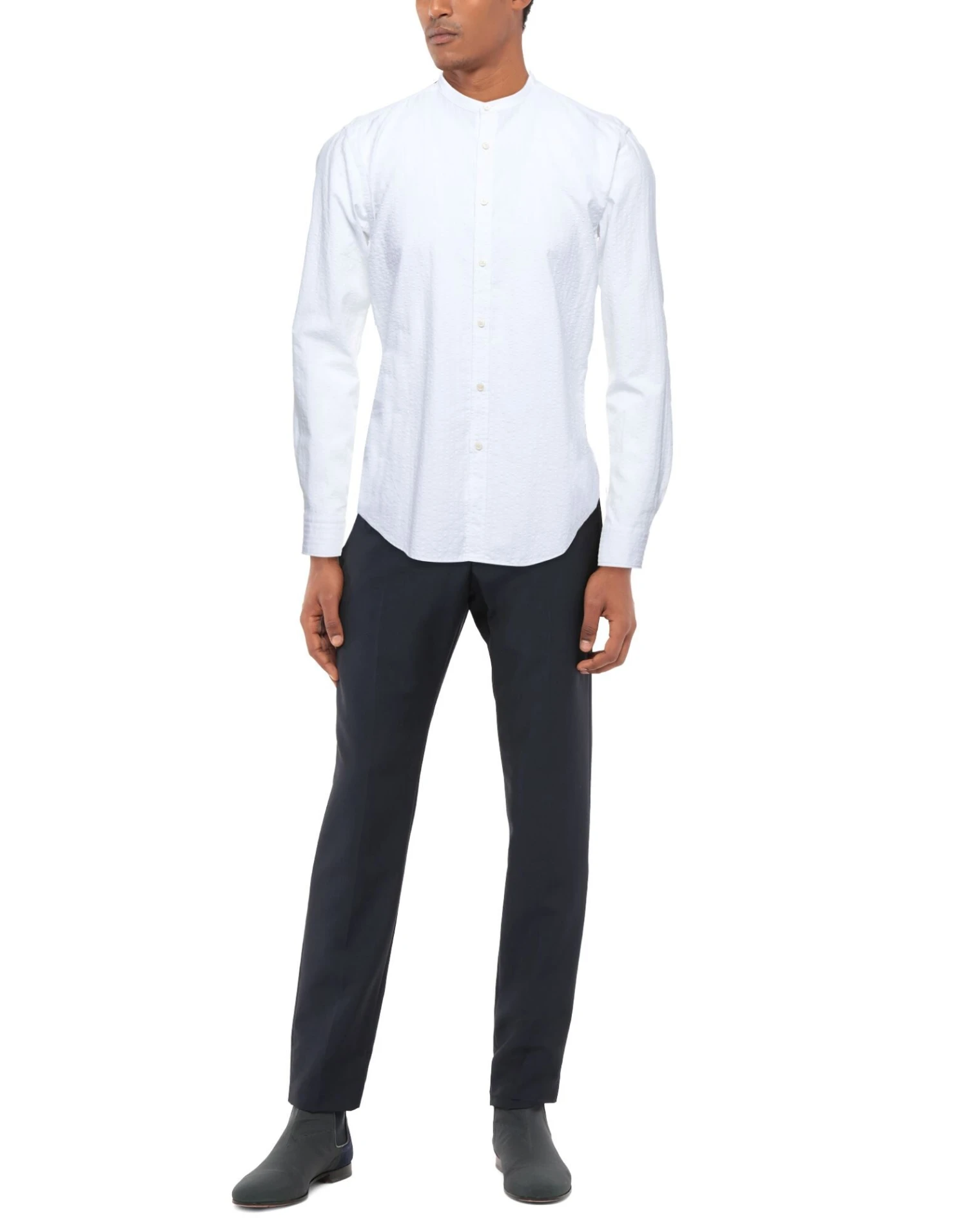 plain weave, logo, solid color, button closing, long sleeves, buttoned cuffs, round collar, no pockets