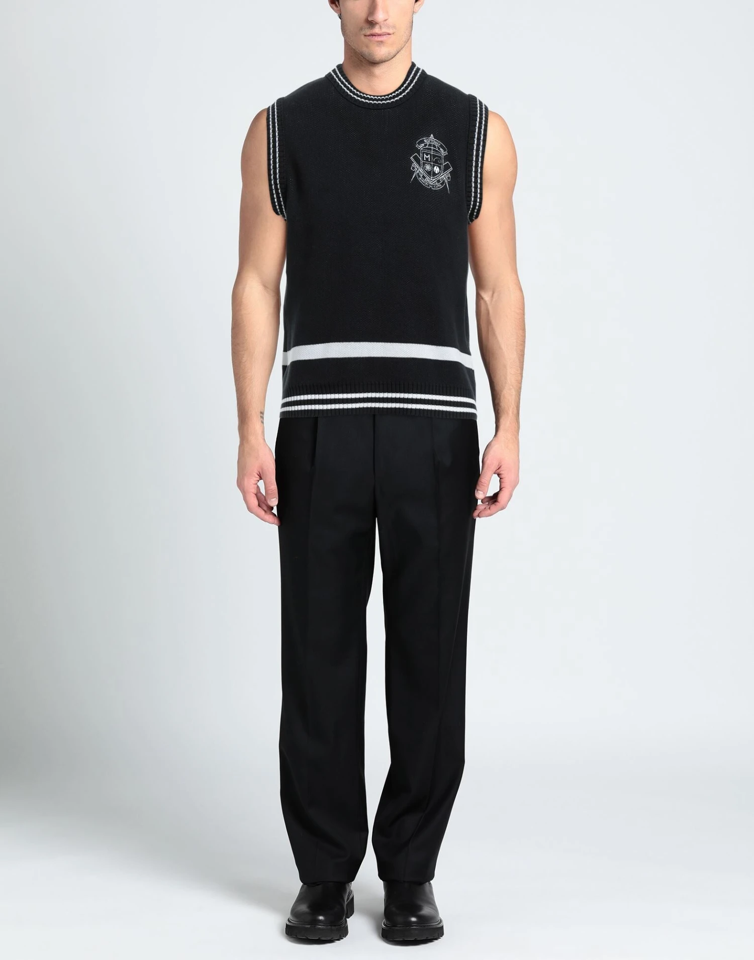 knitted, lightweight knit, brand logo, two-tone, round collar, sleeveless, no pockets