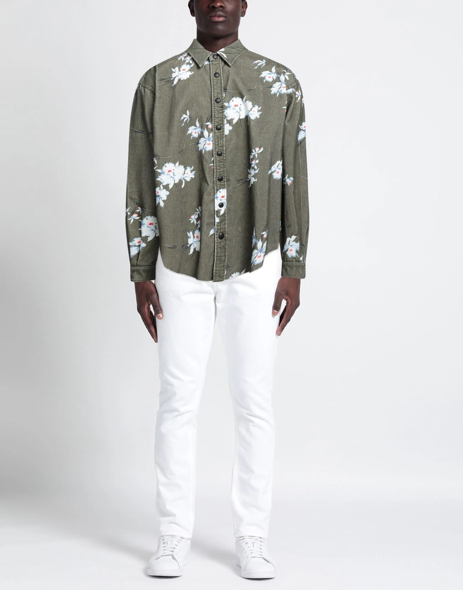 velvet, ribbed, no appliqués, floral design, classic neckline, long sleeves, snap button cuffs, snap buttons fastening, no pockets, overshirt, large sized