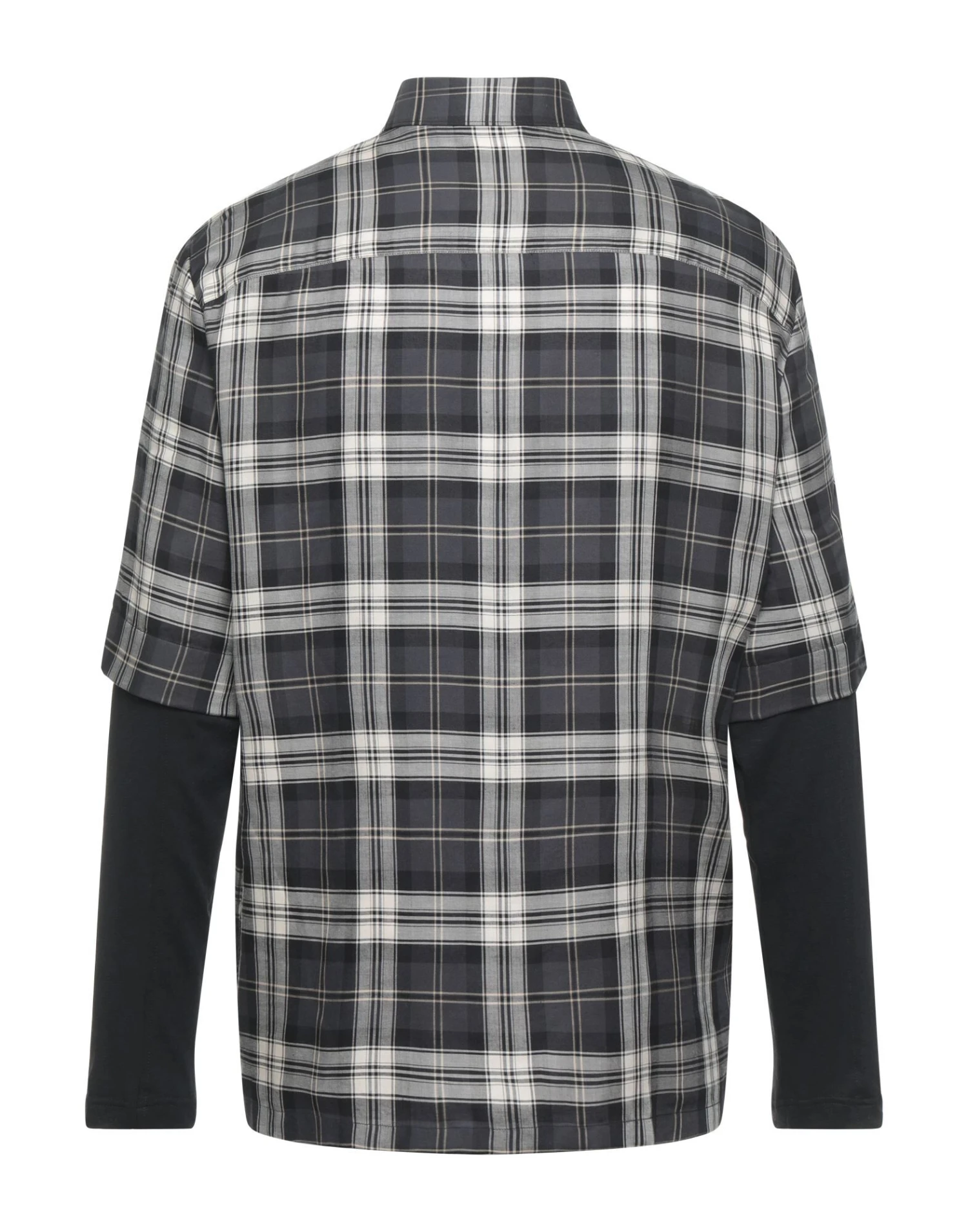 plain weave, no appliqués, tartan pattern, classic neckline, long sleeves, front closure, button closing, no pockets, large sized