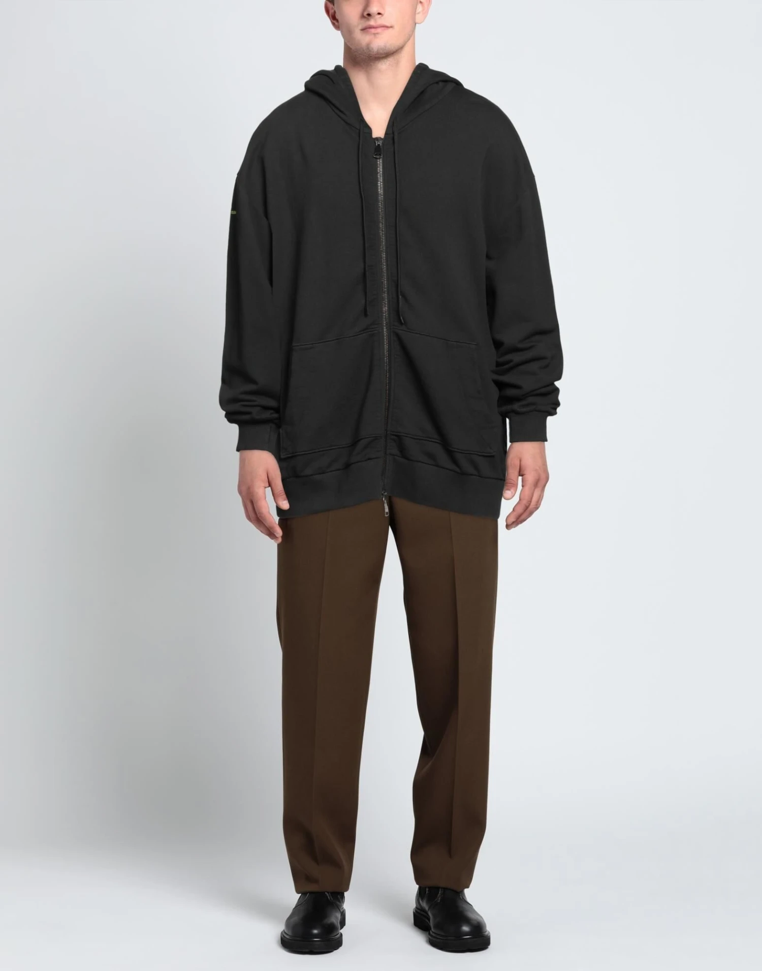 sweatshirt fleece, brand logo, solid color, hooded collar, long sleeves, french terry lining, zipper closure, multipockets