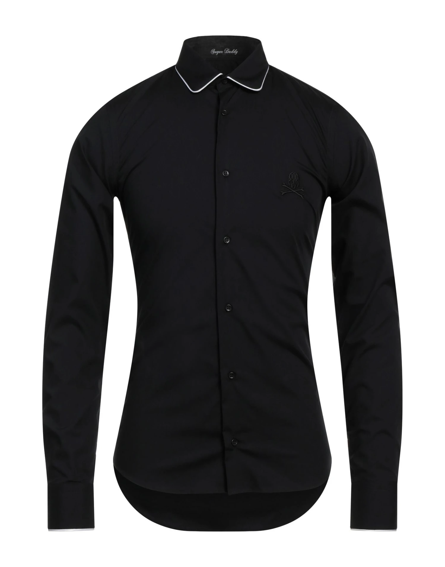 plain weave, brand logo, two-tone, classic neckline, long sleeves, button closing, no pockets