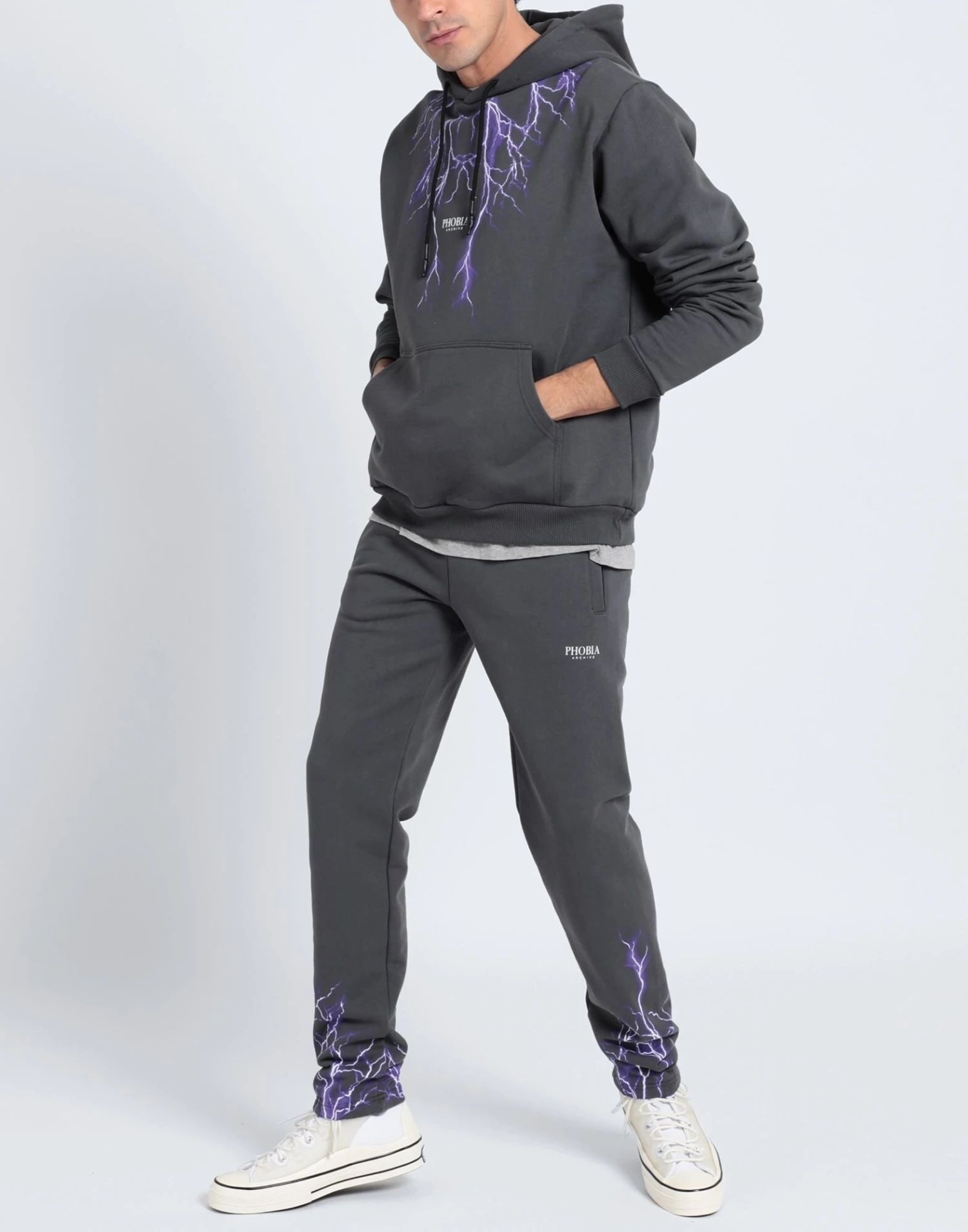 sweatshirt fleece, brand logo, solid color with print, hooded collar, long sleeves, french terry lining, single pocket, lifestyle