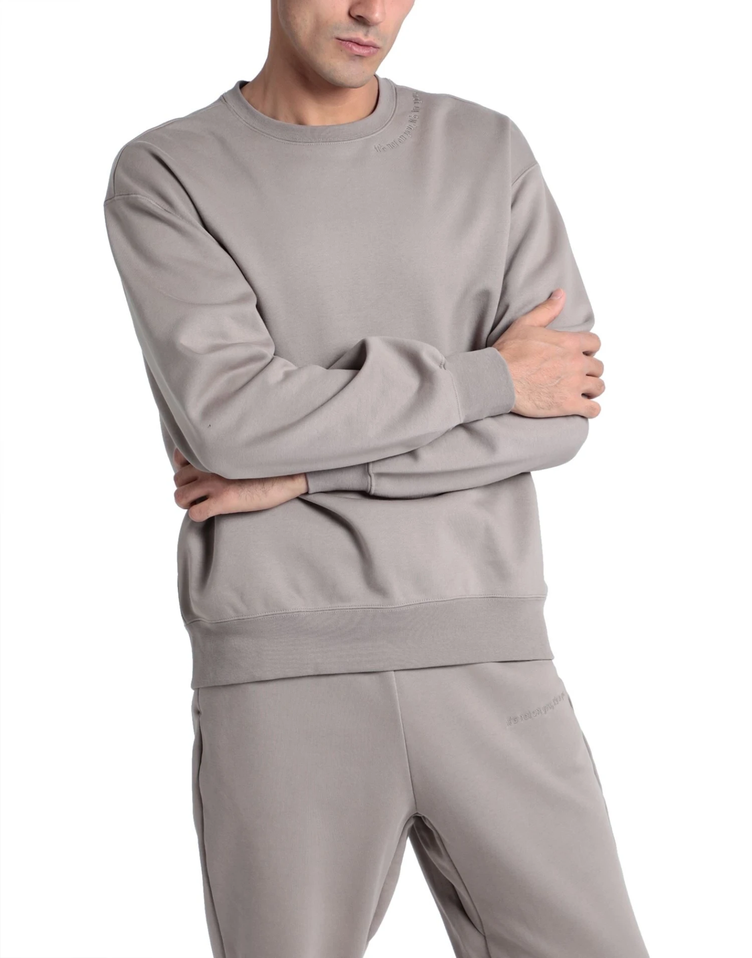 sweatshirt fleece, brand logo, solid color, round collar, long sleeves, fleece lining, lifestyle