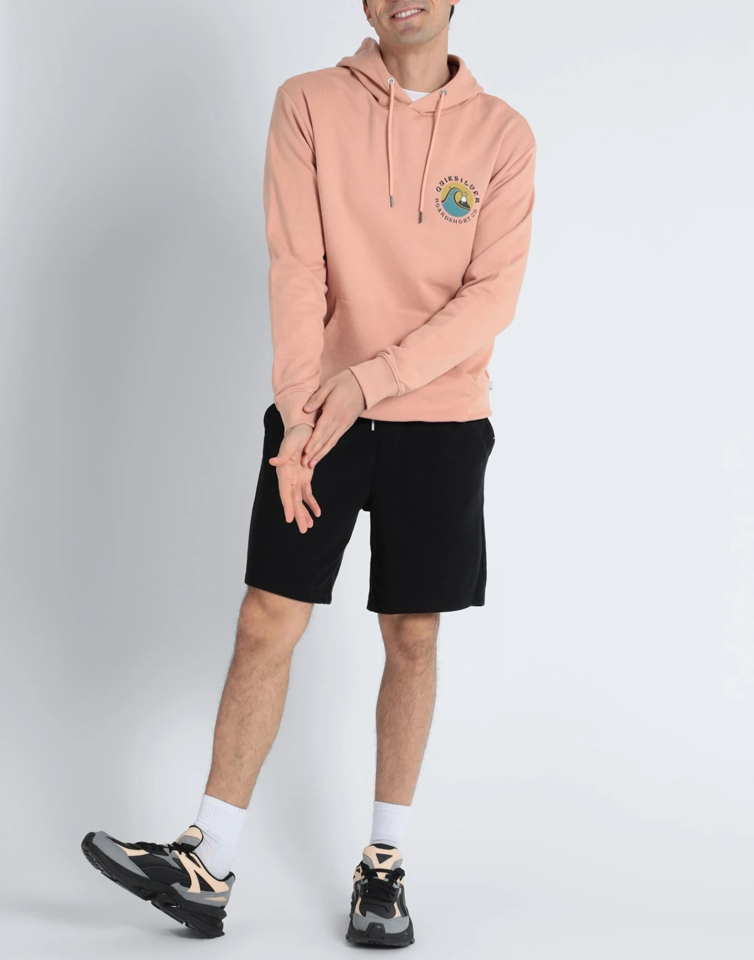 sweatshirt fleece, brand logo, solid color with print, hooded collar, long sleeves, french terry lining, single pocket, lifestyle