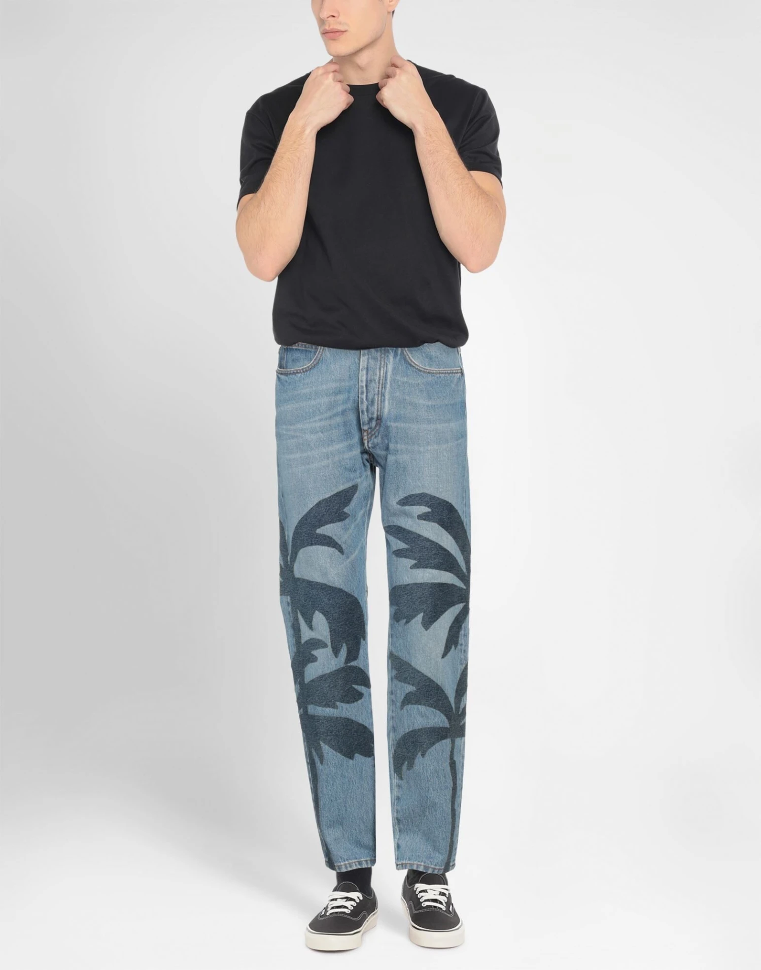denim, brand logo, two-tone, medium wash, high waisted, belt loops, tapered leg, regular fit, button closing, five pockets, skinny model