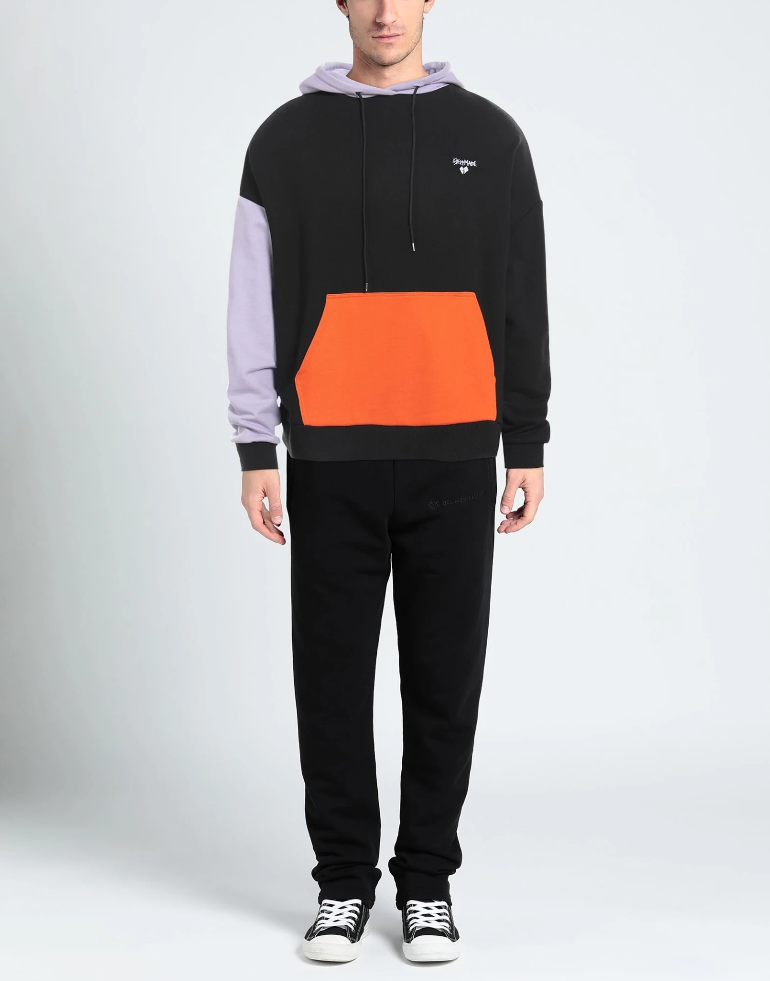 sweatshirt fleece, brand logo, embroidered detailing, multicolor pattern, hooded collar, long sleeves, french terry lining, single pocket