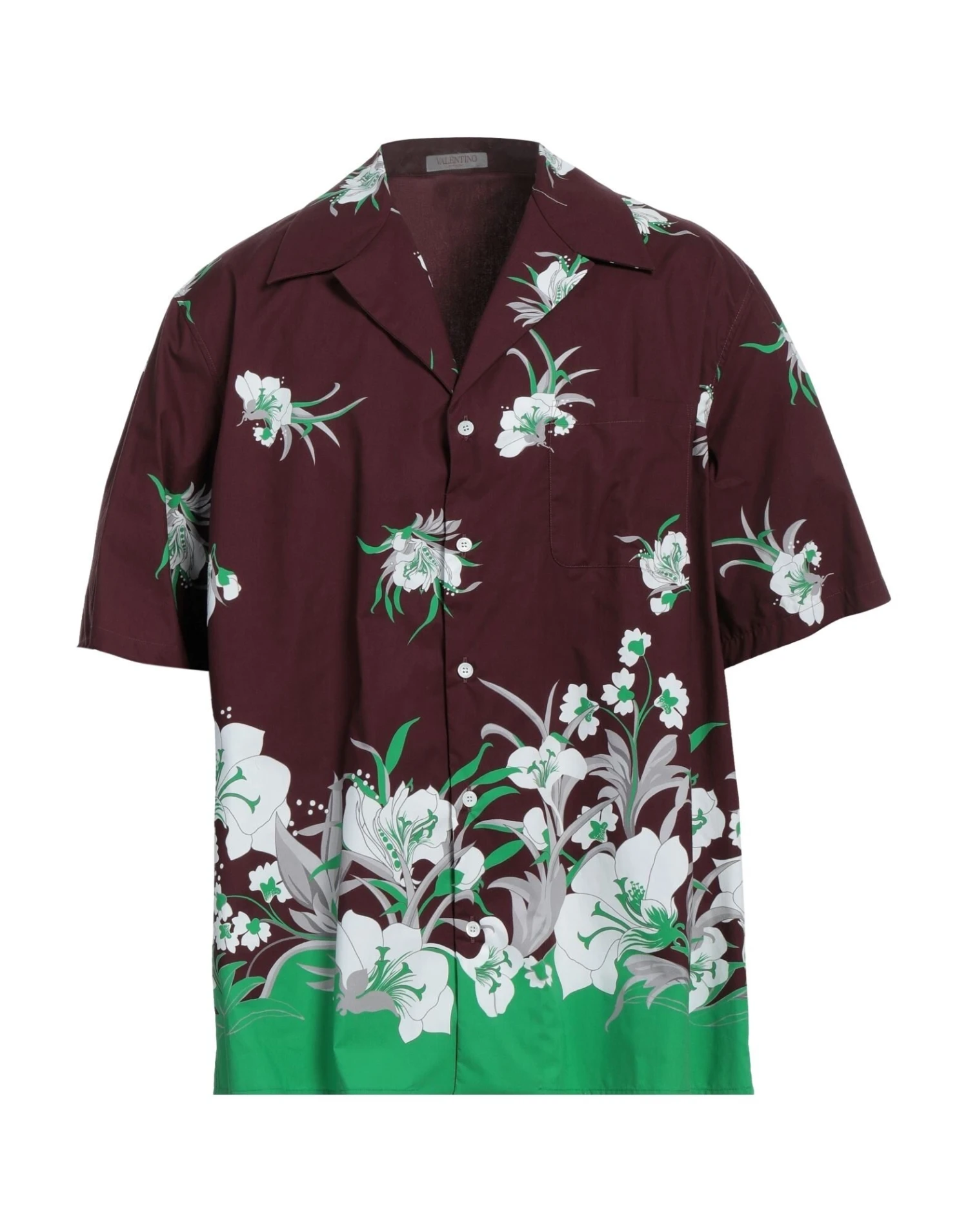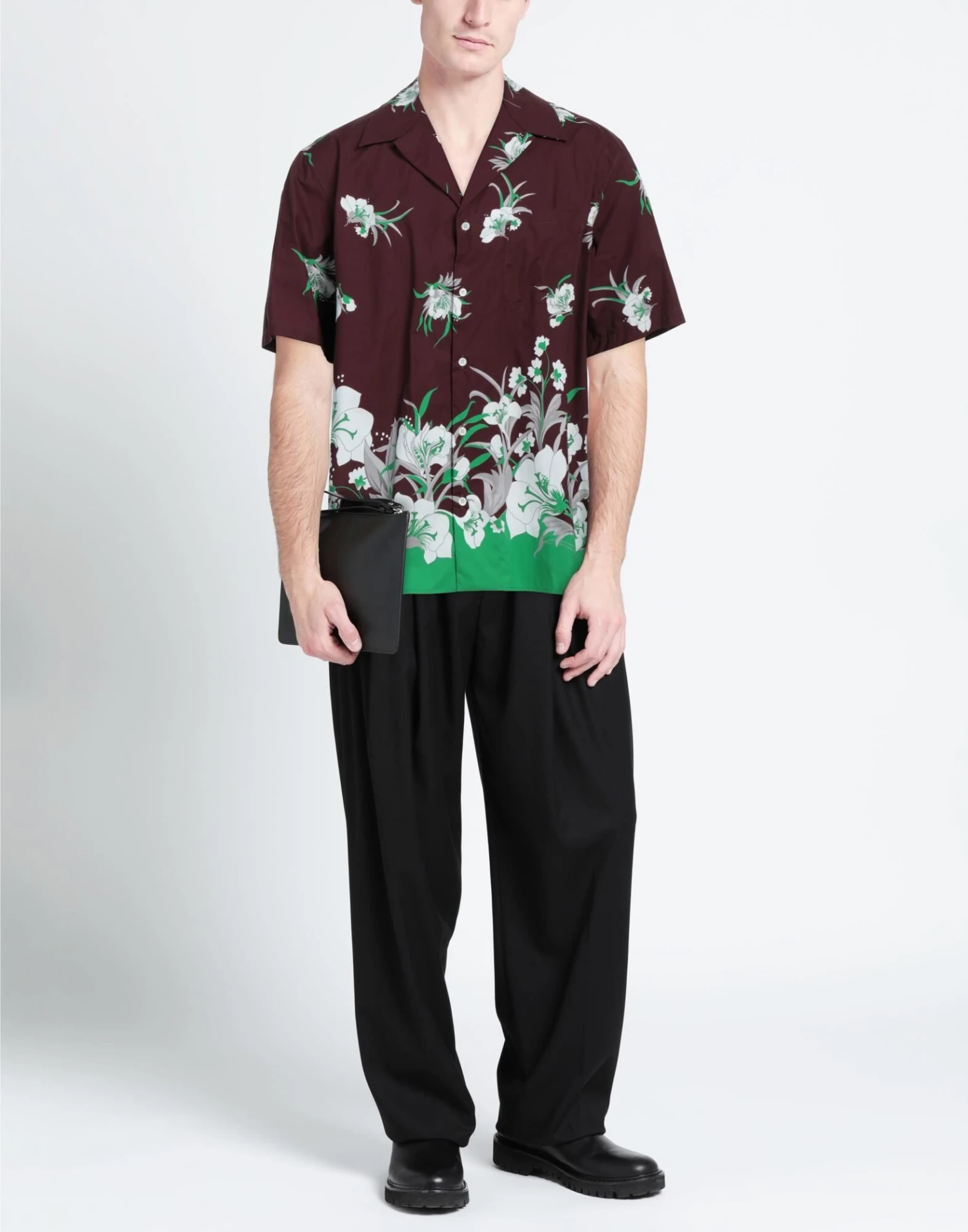 plain weave, brand logo, floral design, classic neckline, short sleeves, button closing, single chest pocket