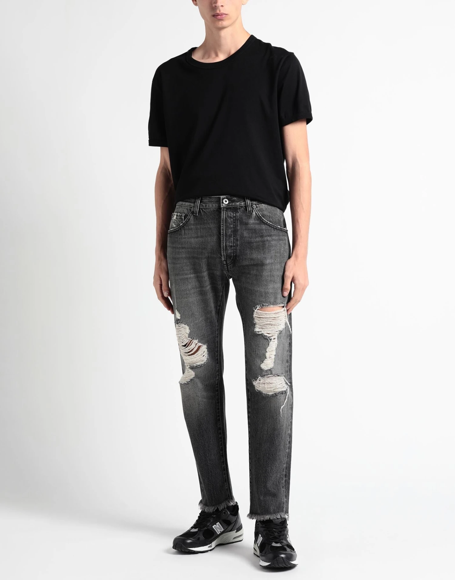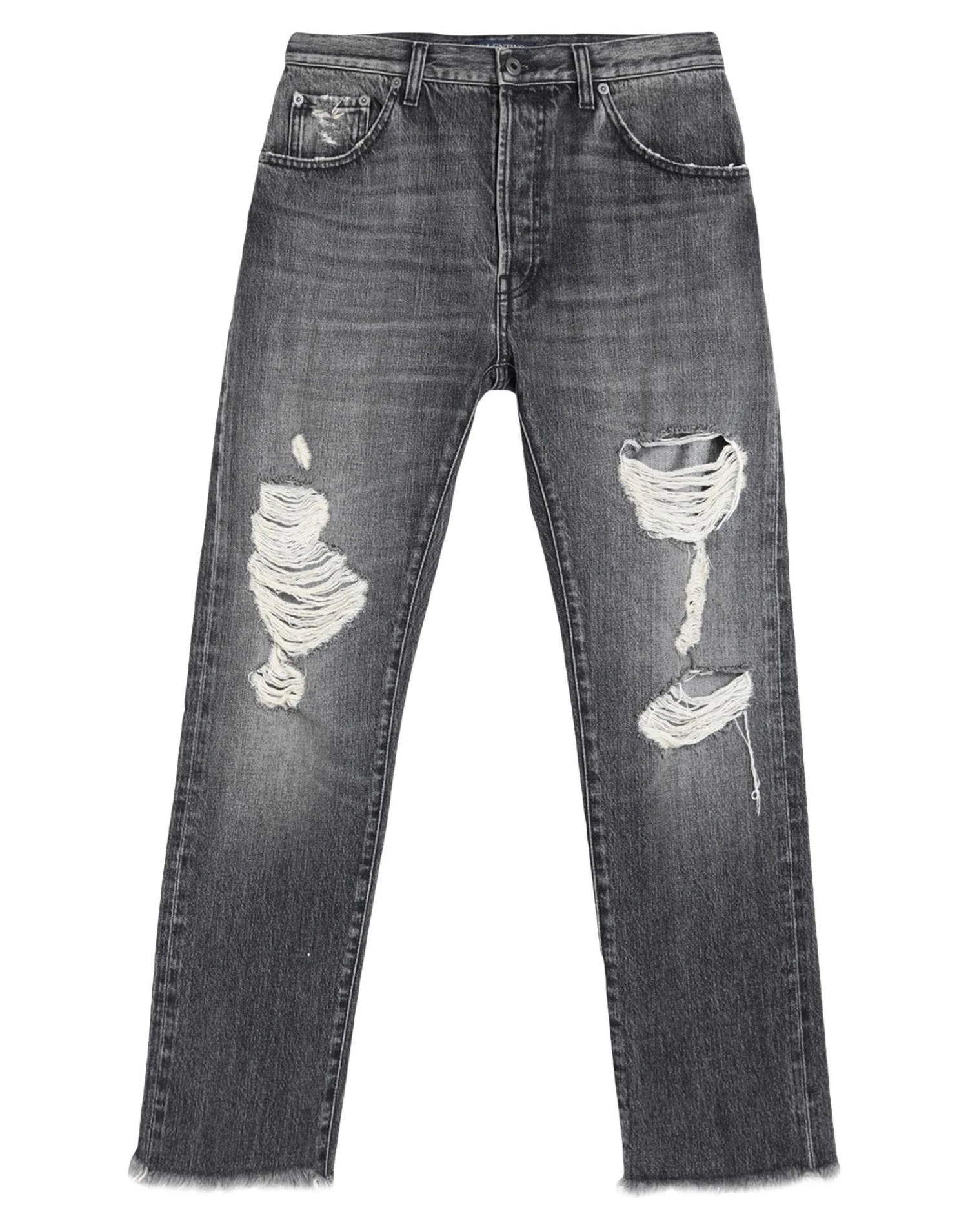 denim, brand logo, worn effect, faded, solid color, colored wash, mid rise, belt loops, regular fit, button closing, multipockets, fringed hem, large sized