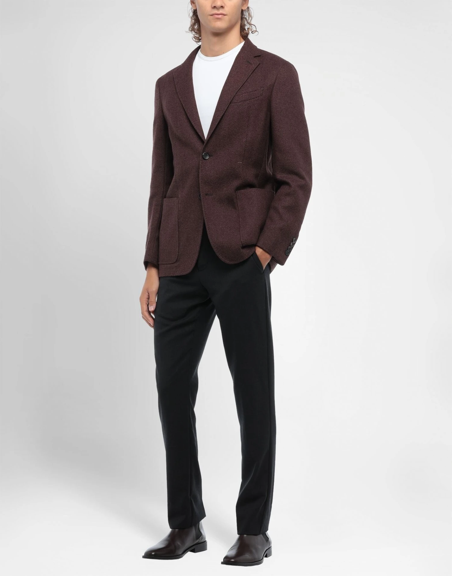 tweed, no appliqués, two-tone, single-breasted , lapel collar, long sleeves, buttoned cuffs, partially lined interior, 2 buttons, rear slit, multipockets, large sized